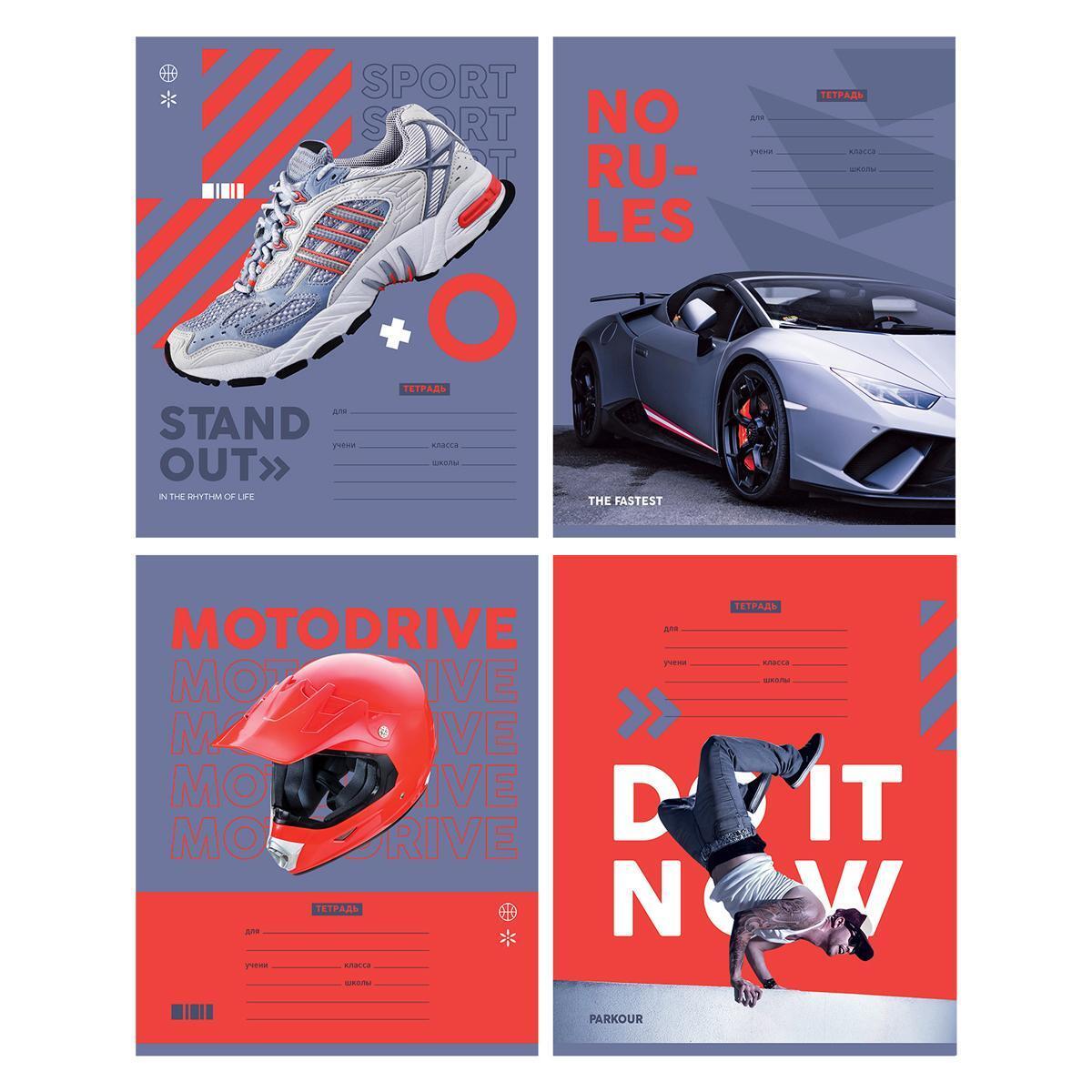 Яркие динамичные дизайны серии "Без правил" привлекут внимание вашего ребенка и сделают учебный процесс увлекательным. Современные спортивные мотивы идеально подходят активным школьникам любого возраста.