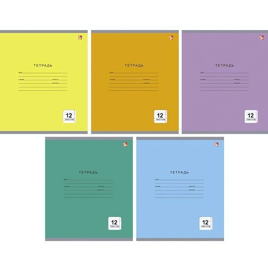 Тетрадь школьная А5, 12л узкая линия, микс цветов, офсет 60г/м², комплект 5 тетрадей