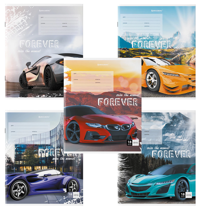 Цвет и дизайн обложки в ассортименте — отгружается один товар, внешний вид определяется случайным образом. На обложке предусмотрены графы для имени и класса. Изображения спортивных автомобилей и динамичные фоновые пейзажи делают тетрадь стильным аксессуаром для учебы, работы и личных дел.