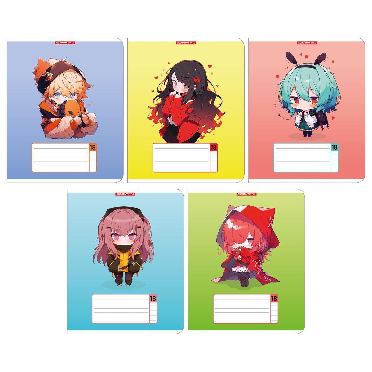 Тетрадь A5, 18 листов в линию, "Аниме чиби", яркие обложки с персонажами