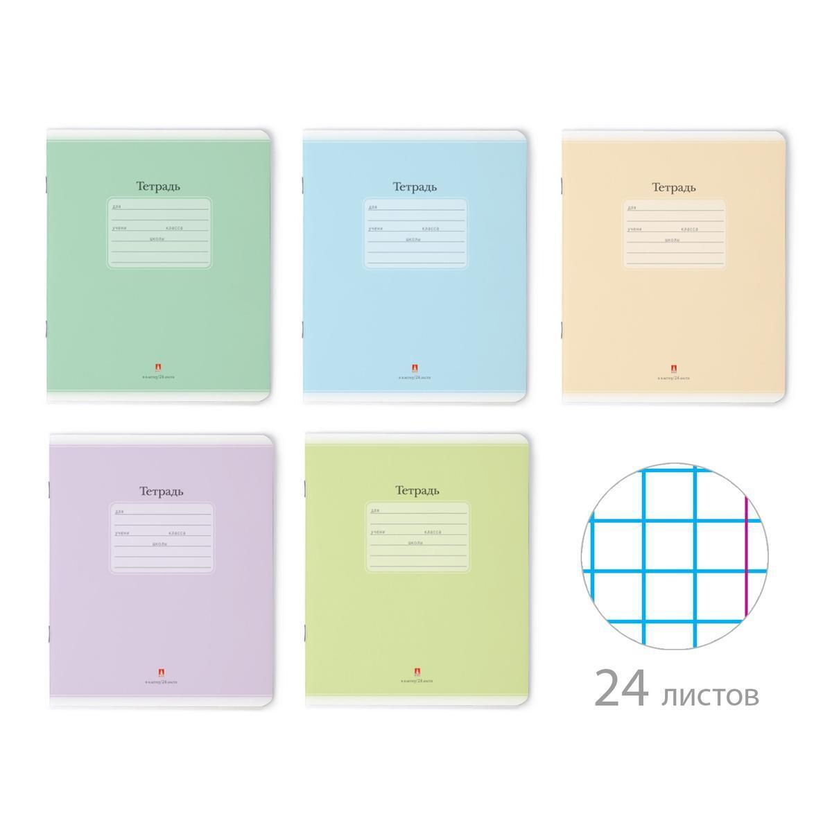 Тетрадь школьная А5 24л "Люкс", мелованный картон 190г/кв.м, 5 цветов, поле для данных, скруглённые углы