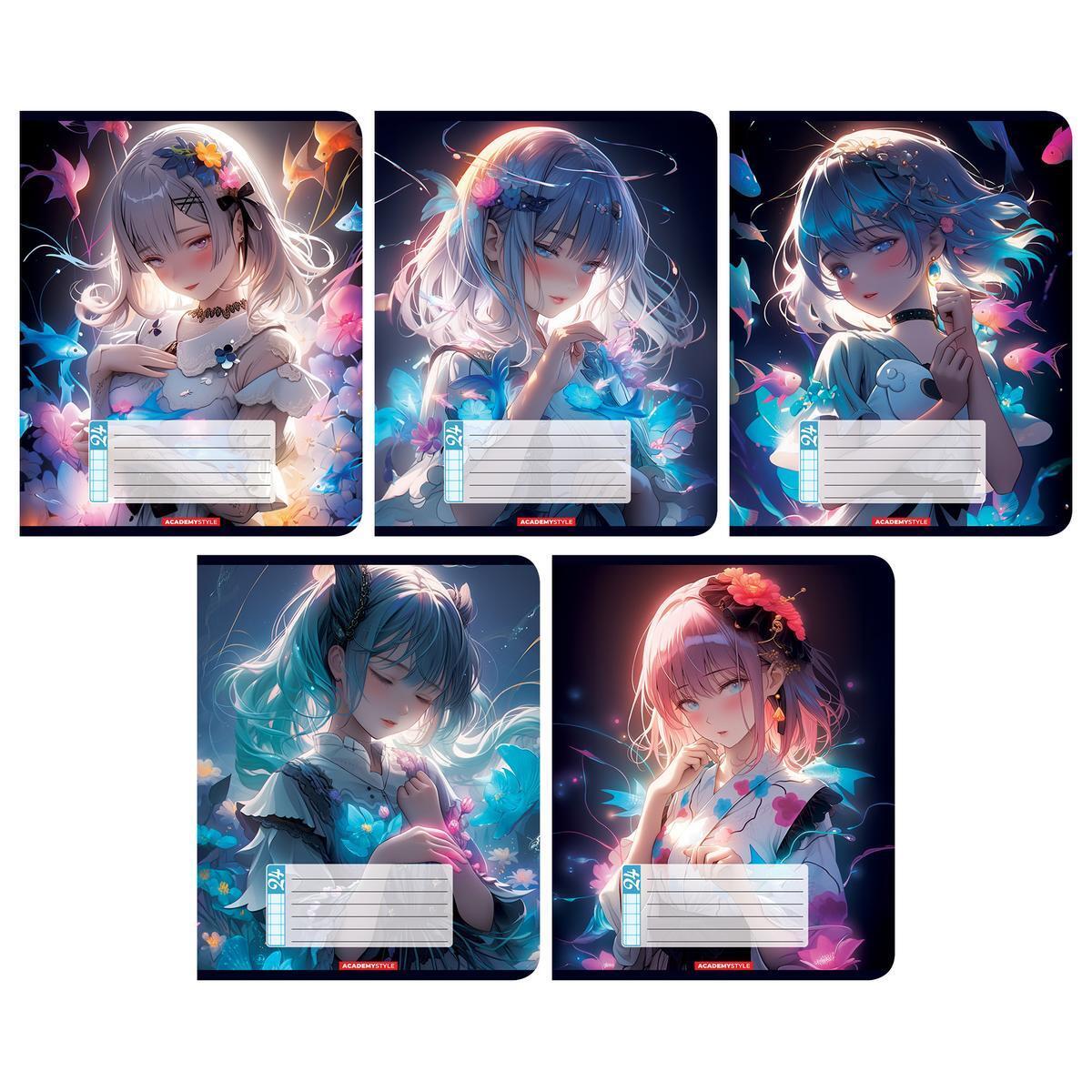 Тетрадь А5 24л клетка "Нимфы", мелованный картон, красные поля