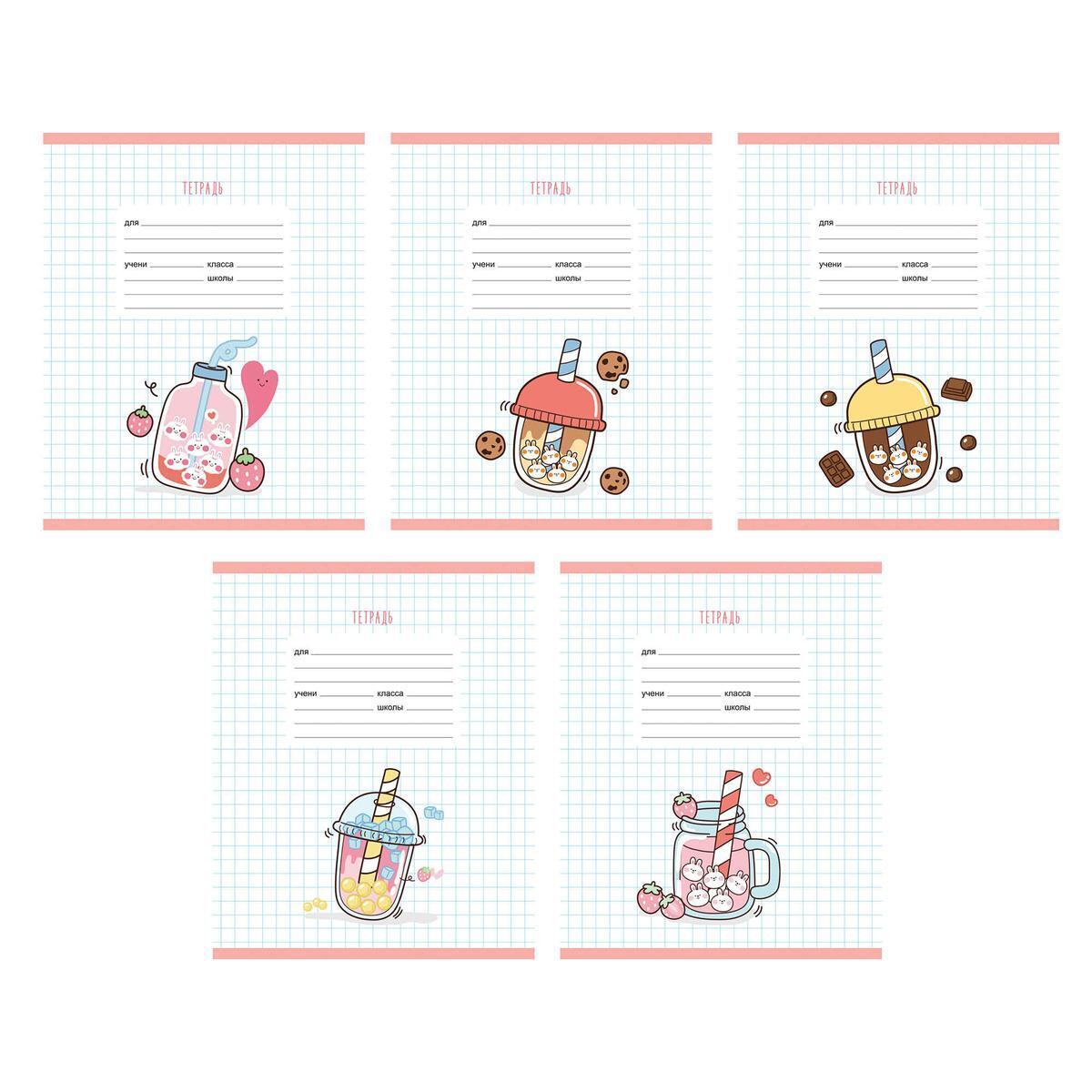 Тетрадь А5 24л клетка 'Вкусняшки', микс цветов, плотная обложка, комплект 5 тетрадей