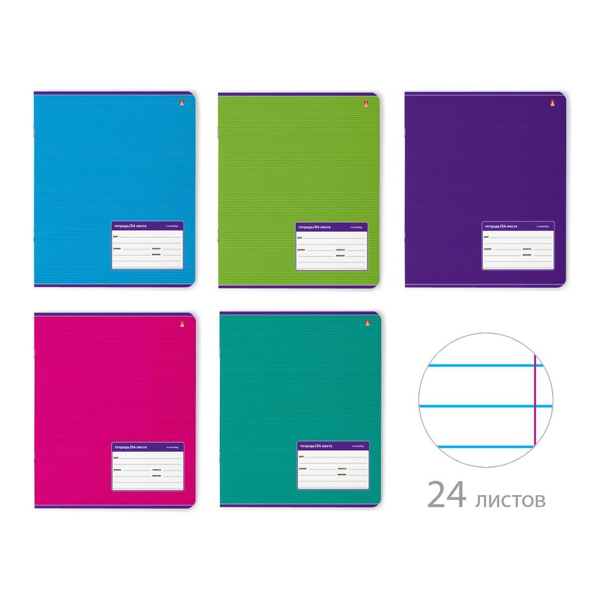 Тетрадь А5 24л линия 'Классика', микс цвета, плотная обложка, офсет 60г, 1 штука