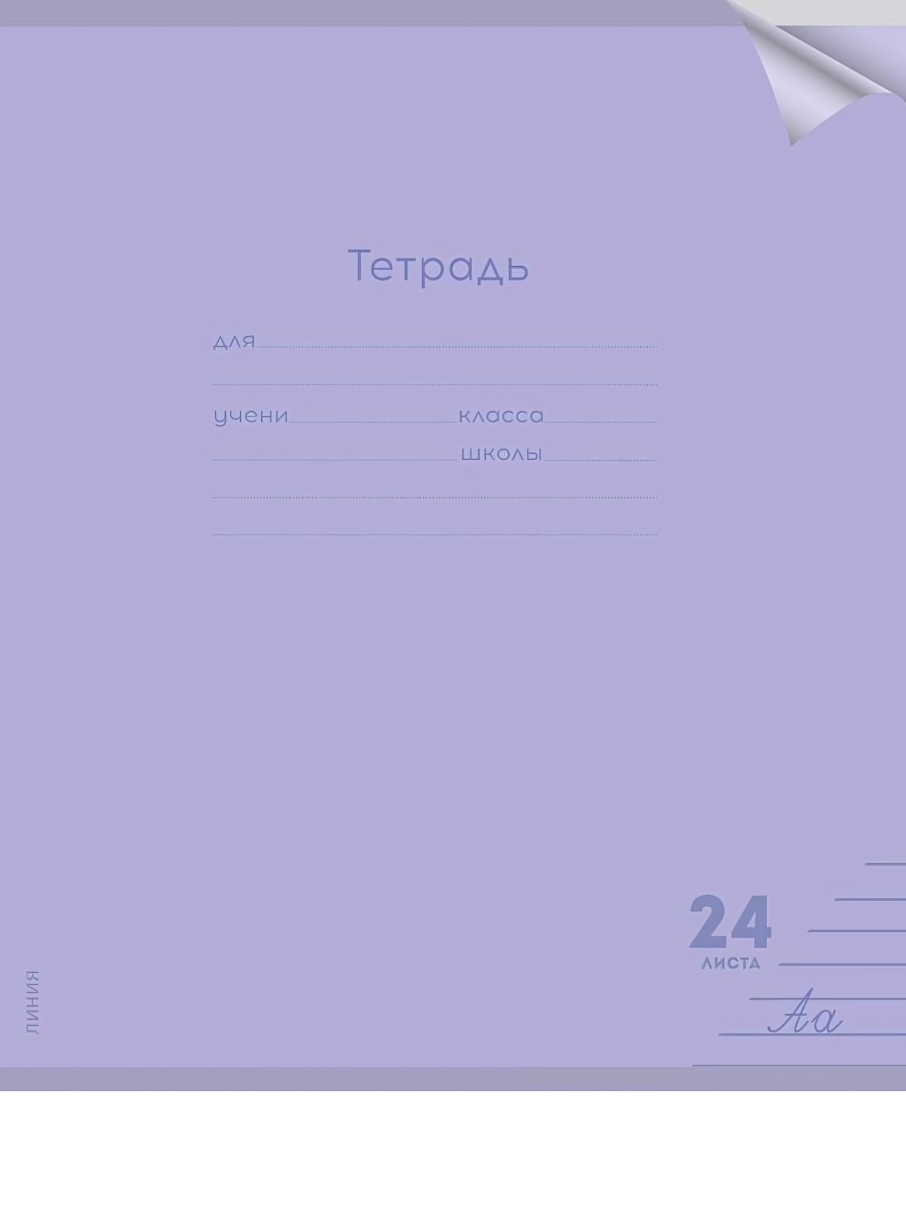- Классический дизайн: Приятный сиреневый оттенок обложки в сочетании с традиционным оформлением титульного листа делает тетрадь универсальной. На лицевой стороне расположены удобные строки для указания имени, класса и школы.