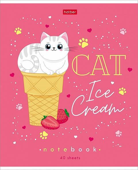 Тетрадь A5 40 листов в клетку "Волшебное мороженое", Hatber, для школы, с котиком