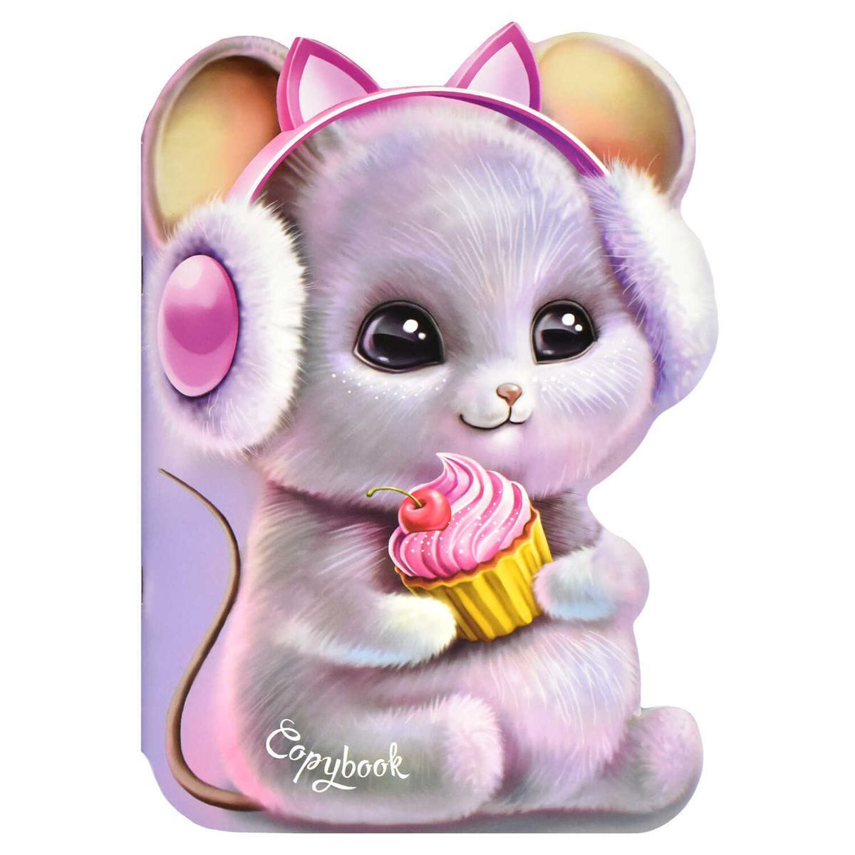 Тетрадь А5 40л «Милый мышонок», точка, мелованный картон, 180х255 мм, фигурная вырубка