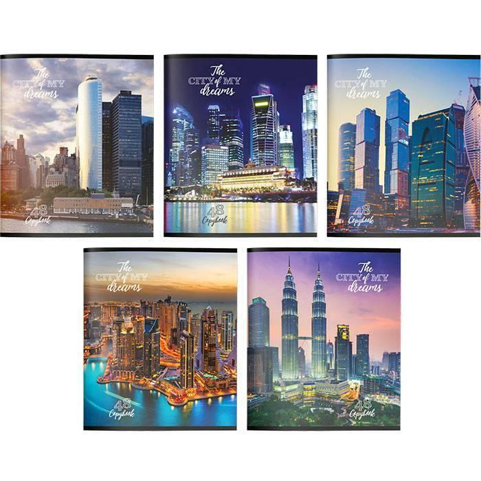 Тетрадь А5 48л "Небоскребы", клетка, офсет, цвет в ассортименте
