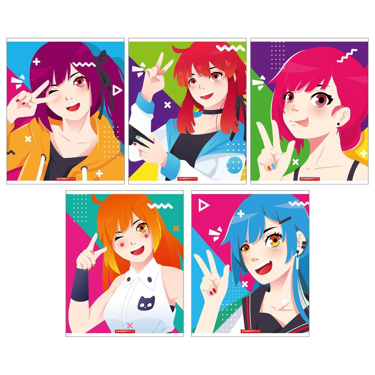 Тетрадь А5 48 листов, клетка, яркий аниме-дизайн, мелованный картон, серия «Academystyle»