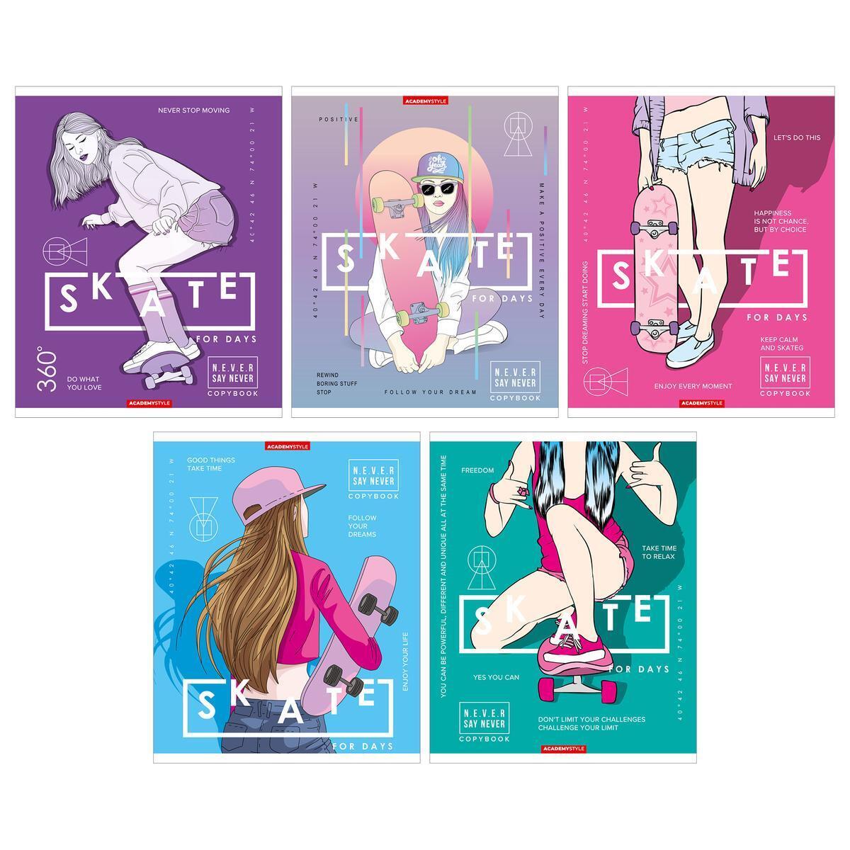 Эта тетрадь формата А5 с 48 листами в клетку станет вашим надежным спутником в учебе, работе и творчестве. Яркий и стильный дизайн обложки с мотивами скейтбординга поднимет настроение и вдохновит на новые свершения. Софт-тач лак придает обложке приятную на ощупь текстуру, делая использование тетради еще более комфортным.