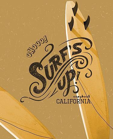 Эксклюзивное оформление с тематикой серфинга и морских волн создаёт вдохновляющую атмосферу. Технология выборочного лакирования подчеркивает графические элементы, а блестящие вкрапления глиттера добавляют стильный акцент.