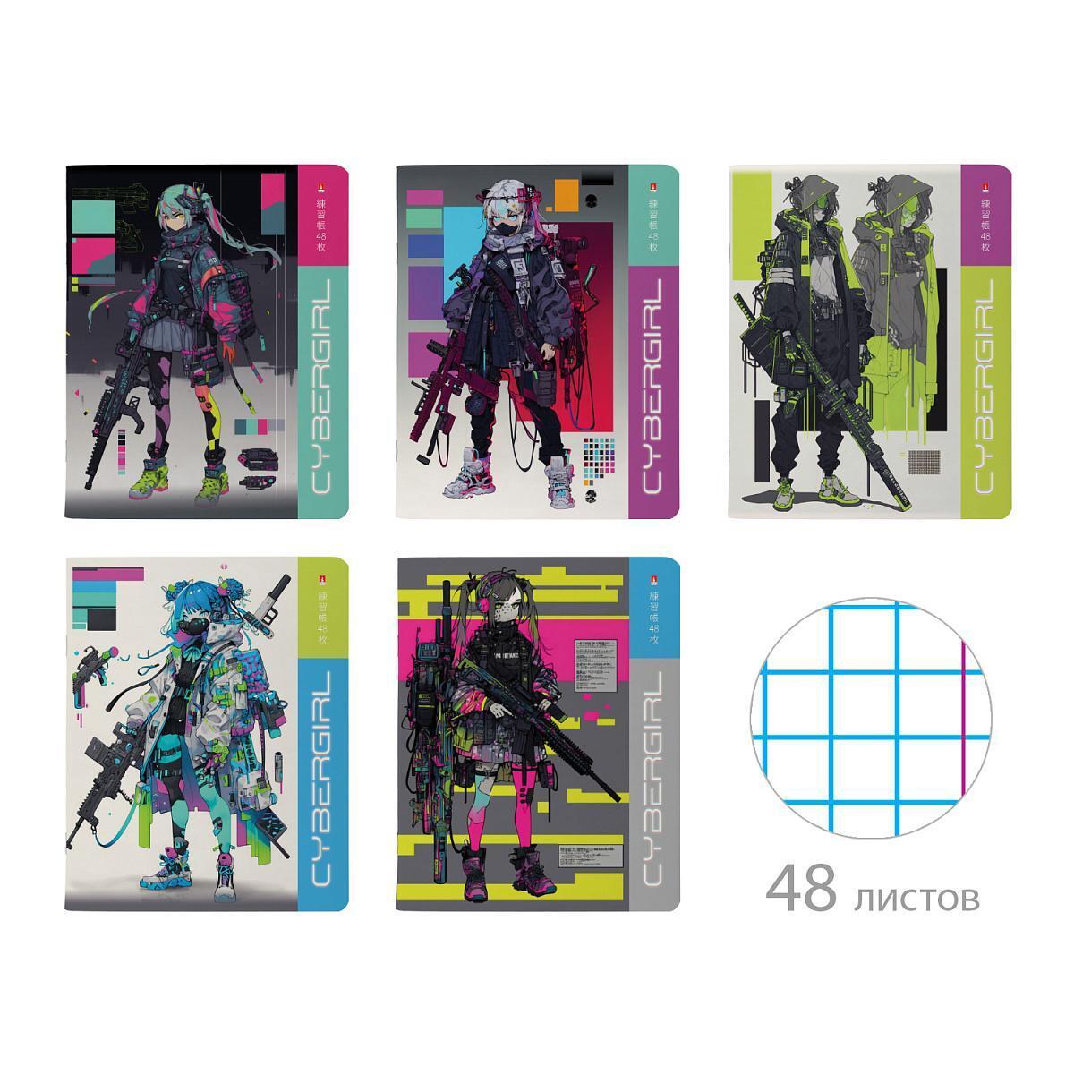 Тетрадь a5, 48 листов в клетку "CyberGirl", матовая ламинация, белая бумага