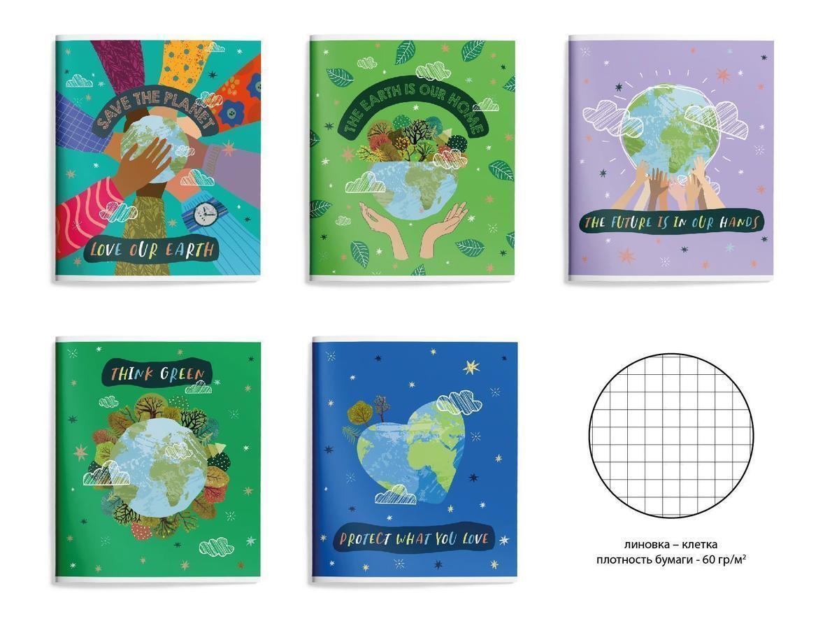 Тетрадь А5 48л, клетка «ЭКО-Планета», картон 190 г/м², плотная обложка, чёткая линовка