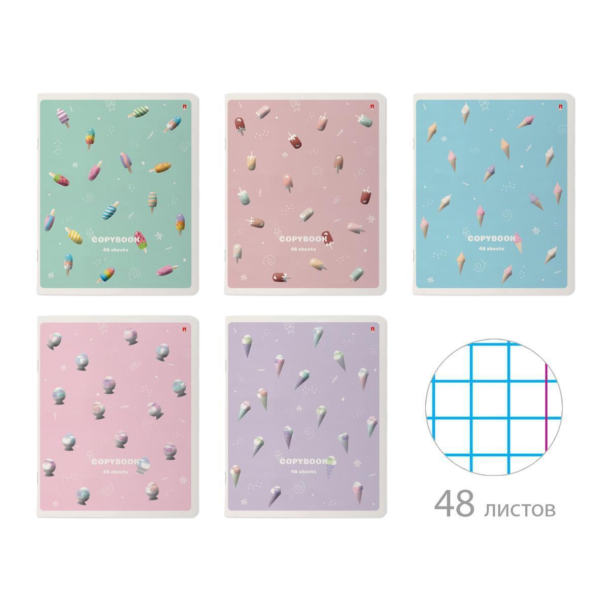 Тетрадь А5 48л, клетка "Эскимошки", 5 видов, дизайн с мороженым, обложка из картона 190 г/м²
