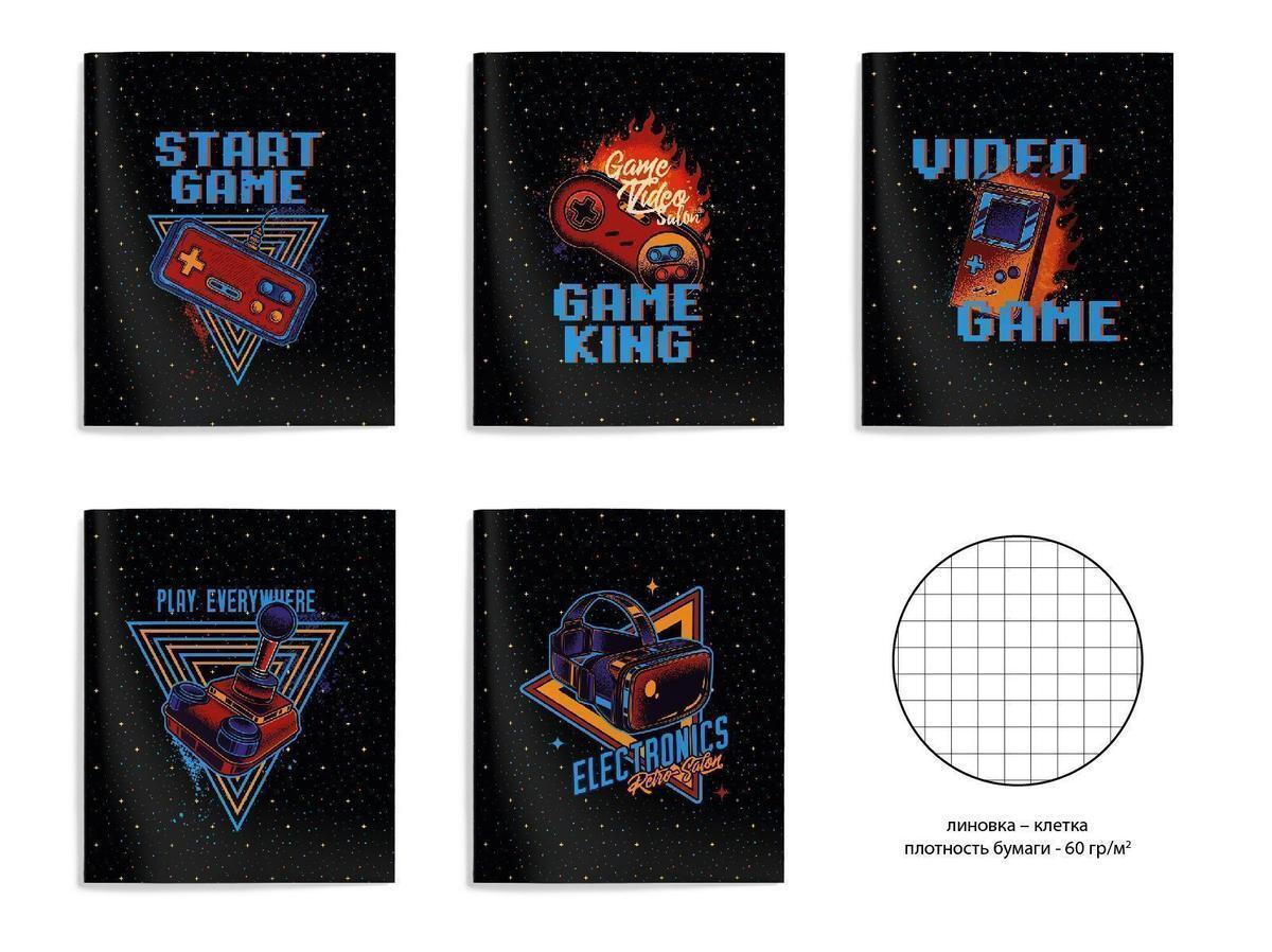 Эта тетрадь формата А5 с 48 страницами идеально подойдет для учебных занятий, заметок или творческих идей. Обложка украшена яркими графическими элементами и текстами, связанными с видеоиграми, что делает ее привлекательной для молодежи и поклонников гейминга.