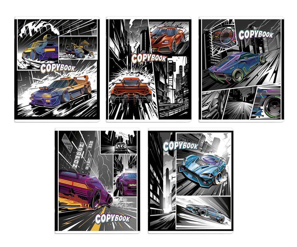 Тетрадь A5, 48 листов в клетку, серия "Гонки", яркие обложки с авто