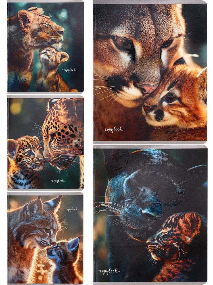 Тетрадь школьная А5 48 листов в клетку "Мамы и детёныши-1"