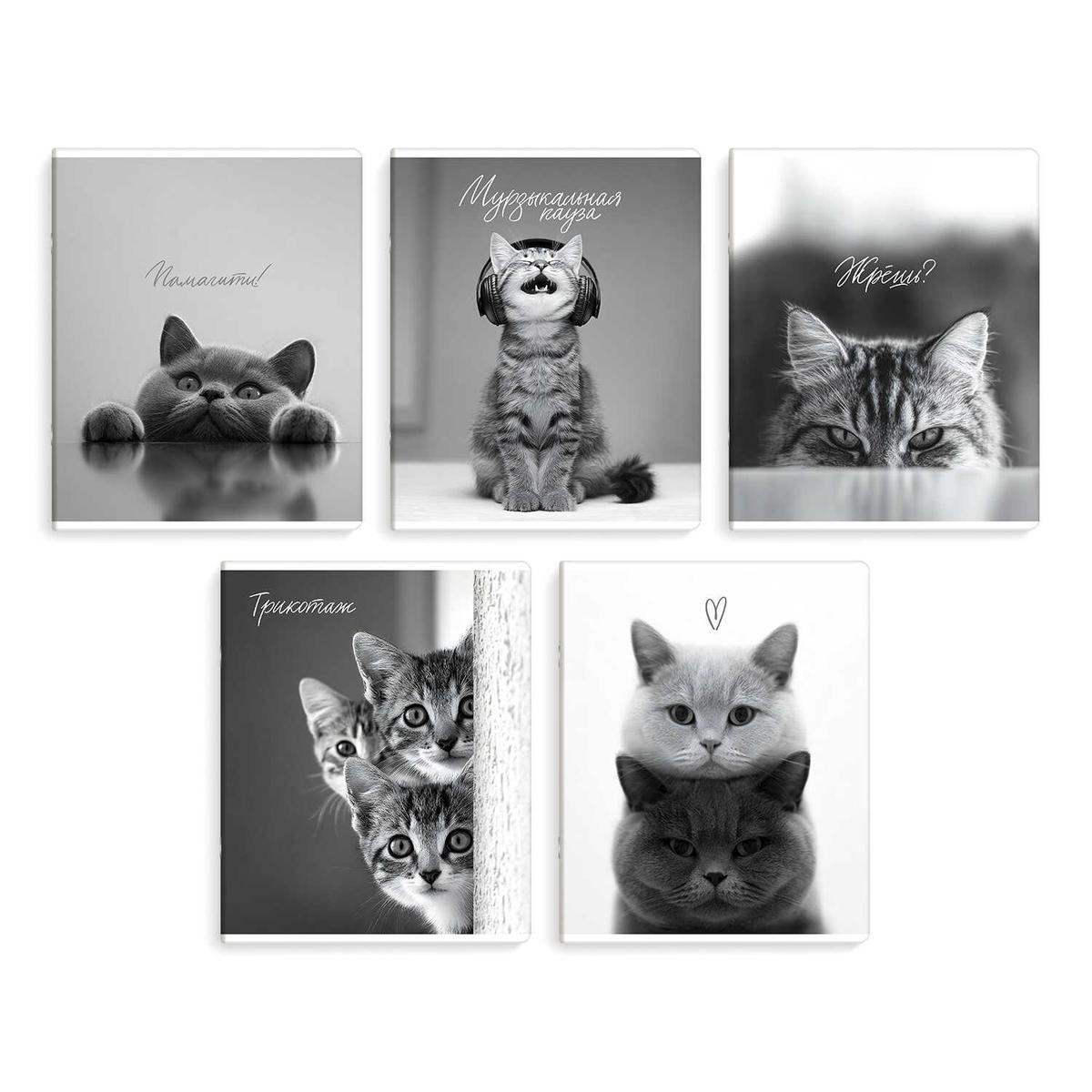 Тетрадь в клетку "Монохромные коты" — стиль и вдохновение в каждой записи