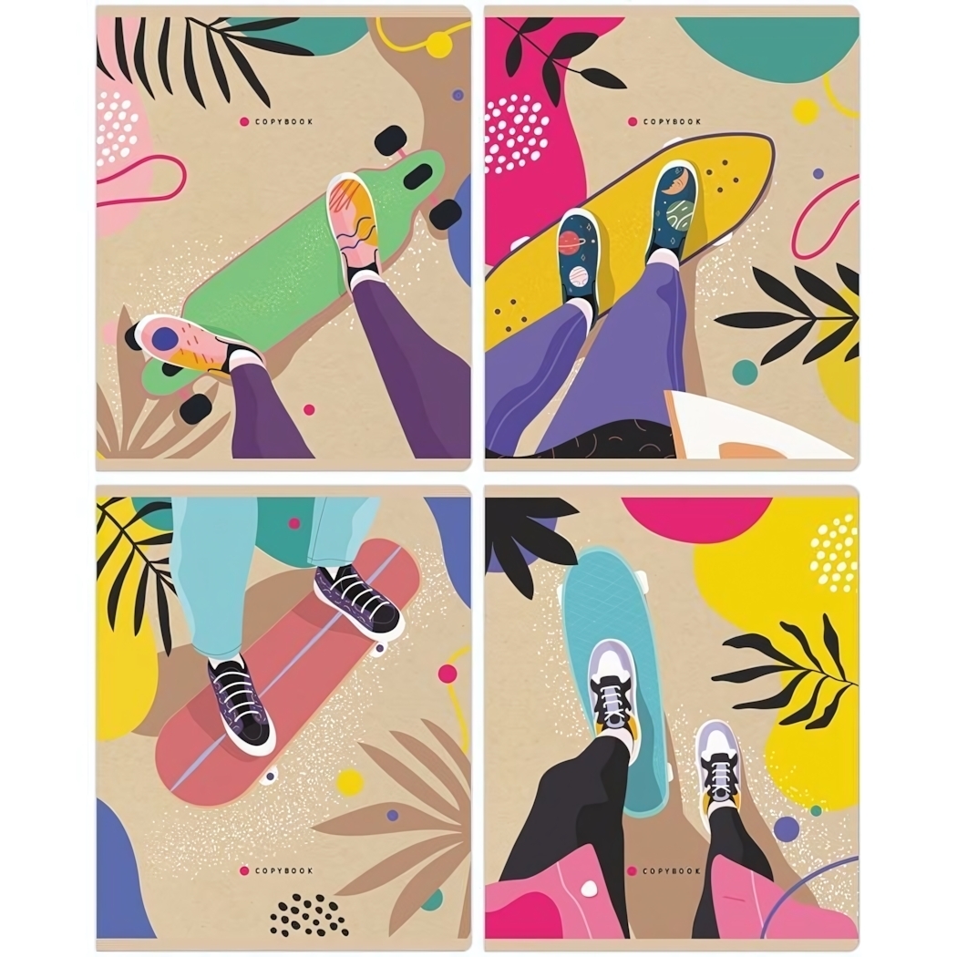 - Яркий дизайн: Обложка из мелованного картона с оригинальными иллюстрациями на тему скейтбординга поднимет настроение и вдохновит на новые свершения.