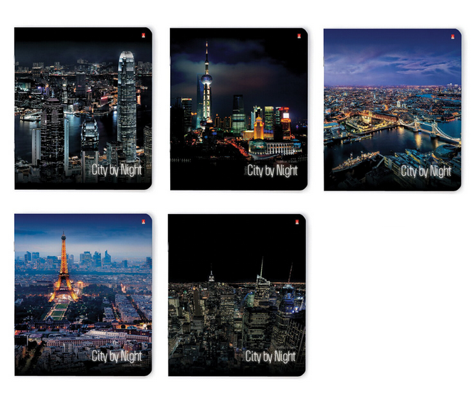 - Уникальный дизайн: 5 различных обложек с изображением ночных городов мира.
