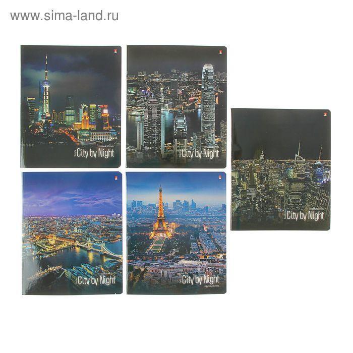 Тетрадь a5, 48 листов в клетку "Ночные города", 5 штук с разными дизайнами