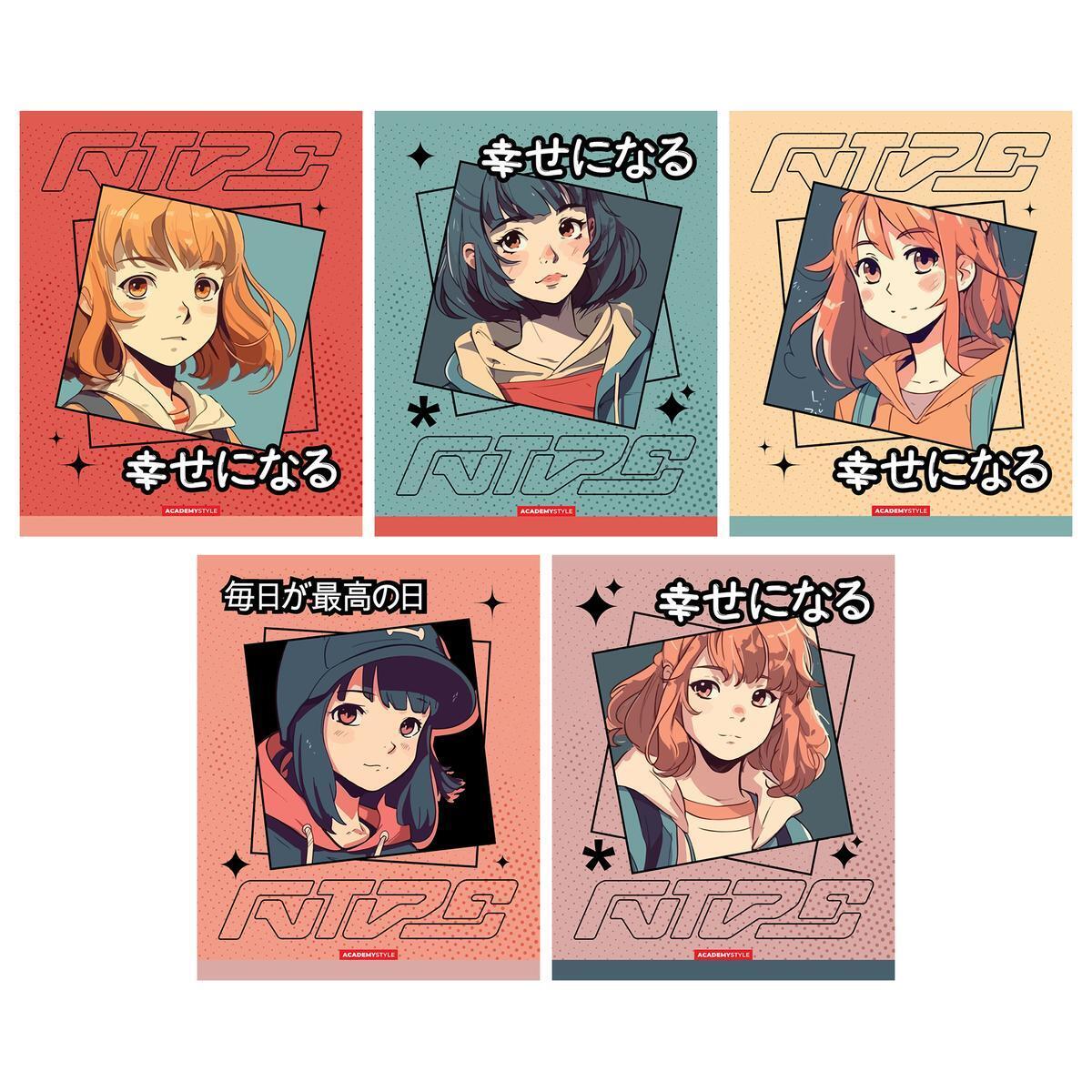 Тетрадь A5, 48 листов в клетку "Портреты", стильный дизайн для учебы