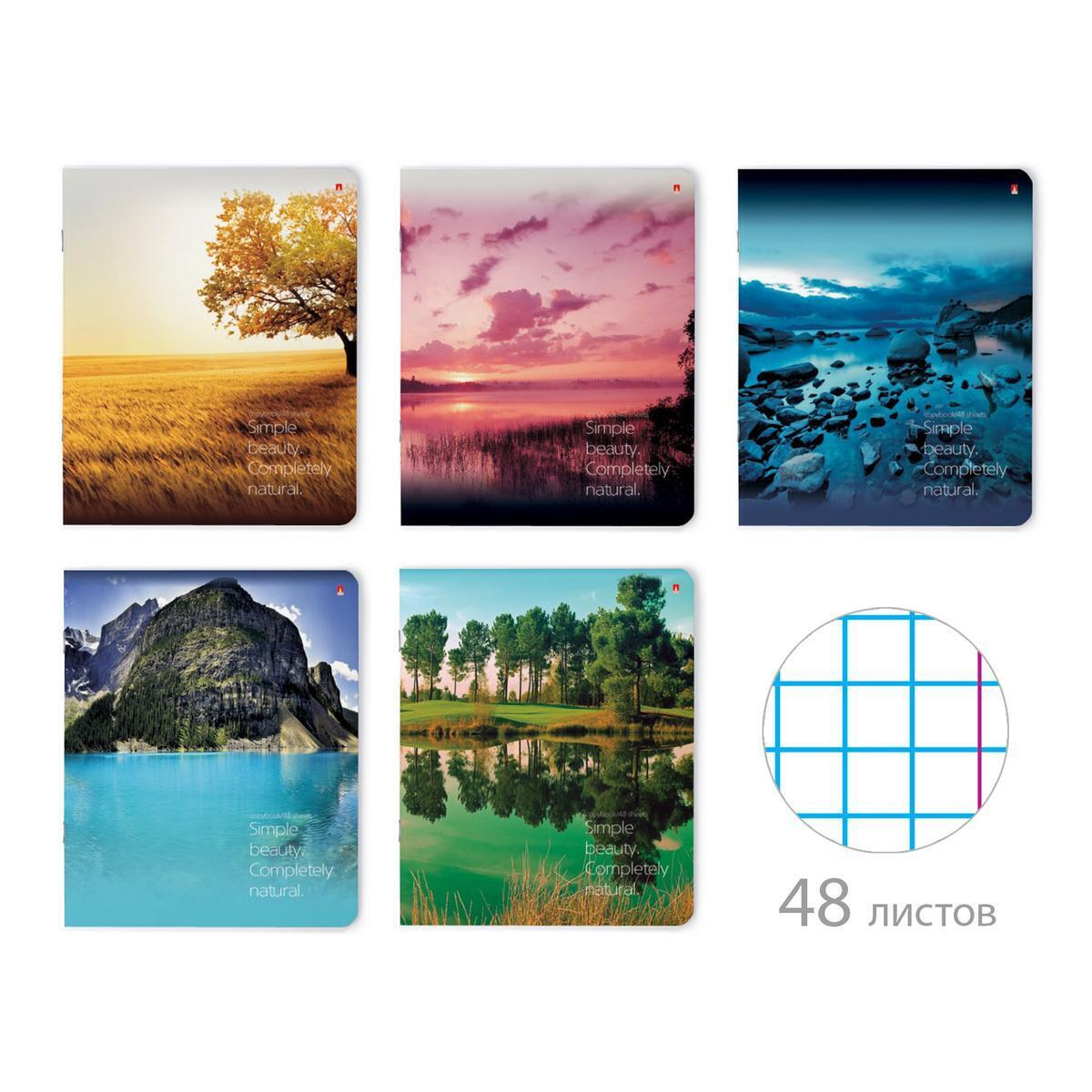 Тетрадь а5, 48 листов, клетка, «природа. пейзажи» – цвет в ассортименте, обложка из плотного картонa 190 г/м²