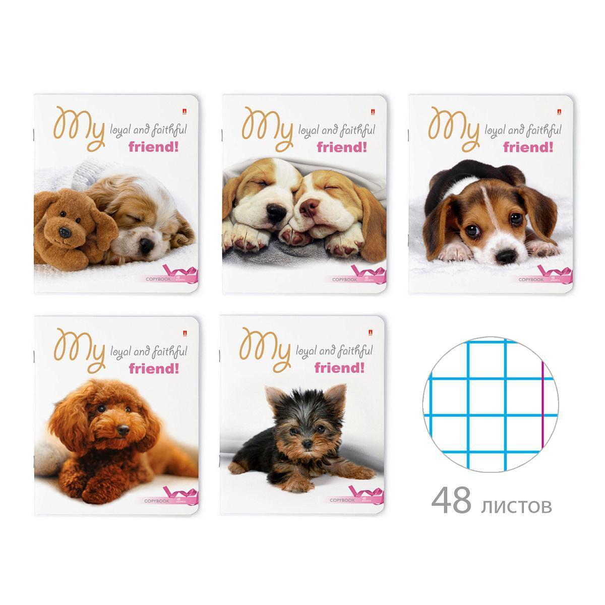 Тетрадь А5 48 листов, клетка «Щеночки» с УФ-лаком, белоснежный блок, для школы и творчества