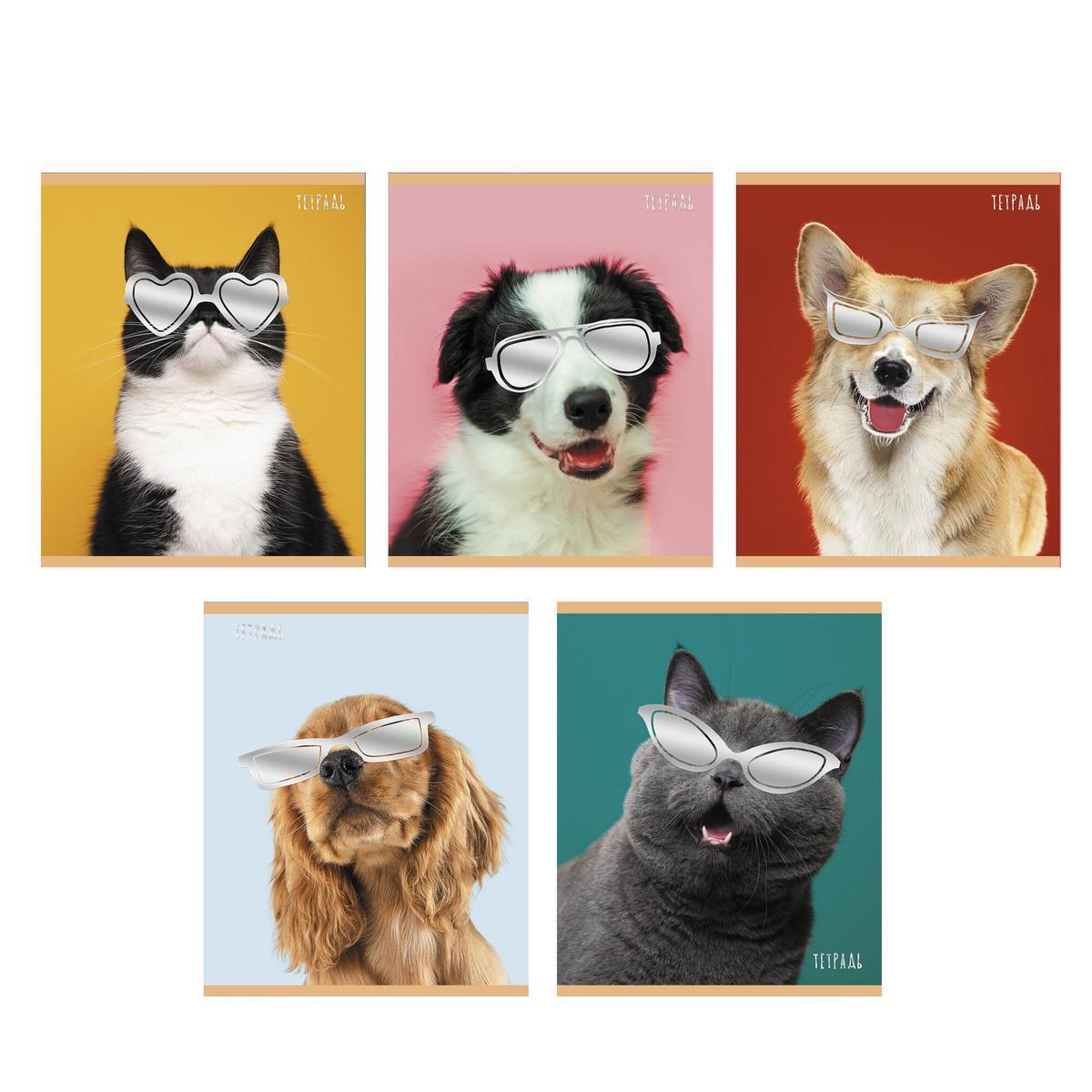 Тетрадь А5 48л. клетка 'Стиляги', обложка с животными в очках, скрепка