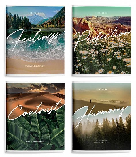 Обратите внимание: цвет обложки определяется случайным образом из доступных вариантов ('Feelings', 'Perfection', 'Contrast', 'Harmony'). Каждый вариант представлен оригинальным дизайном с природными элементами.