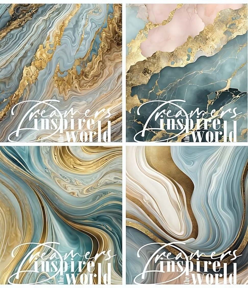 Серия "Яркие текстуры" создана для тех, кто ценит красоту и качество. Плавные линии, золотые прожилки и современные цветовые решения делают ее уникальной. Текст "Dreamers inspire the world" на обложке станет ежедневным напоминанием о важности стремлений.