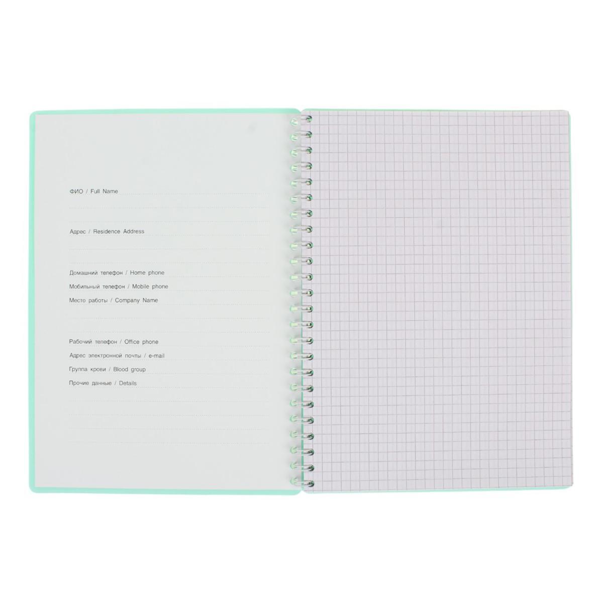 Тетрадь А5 80 листов, клетка «Pastel Collection Mint», пластиковая обложка, металл.гребень