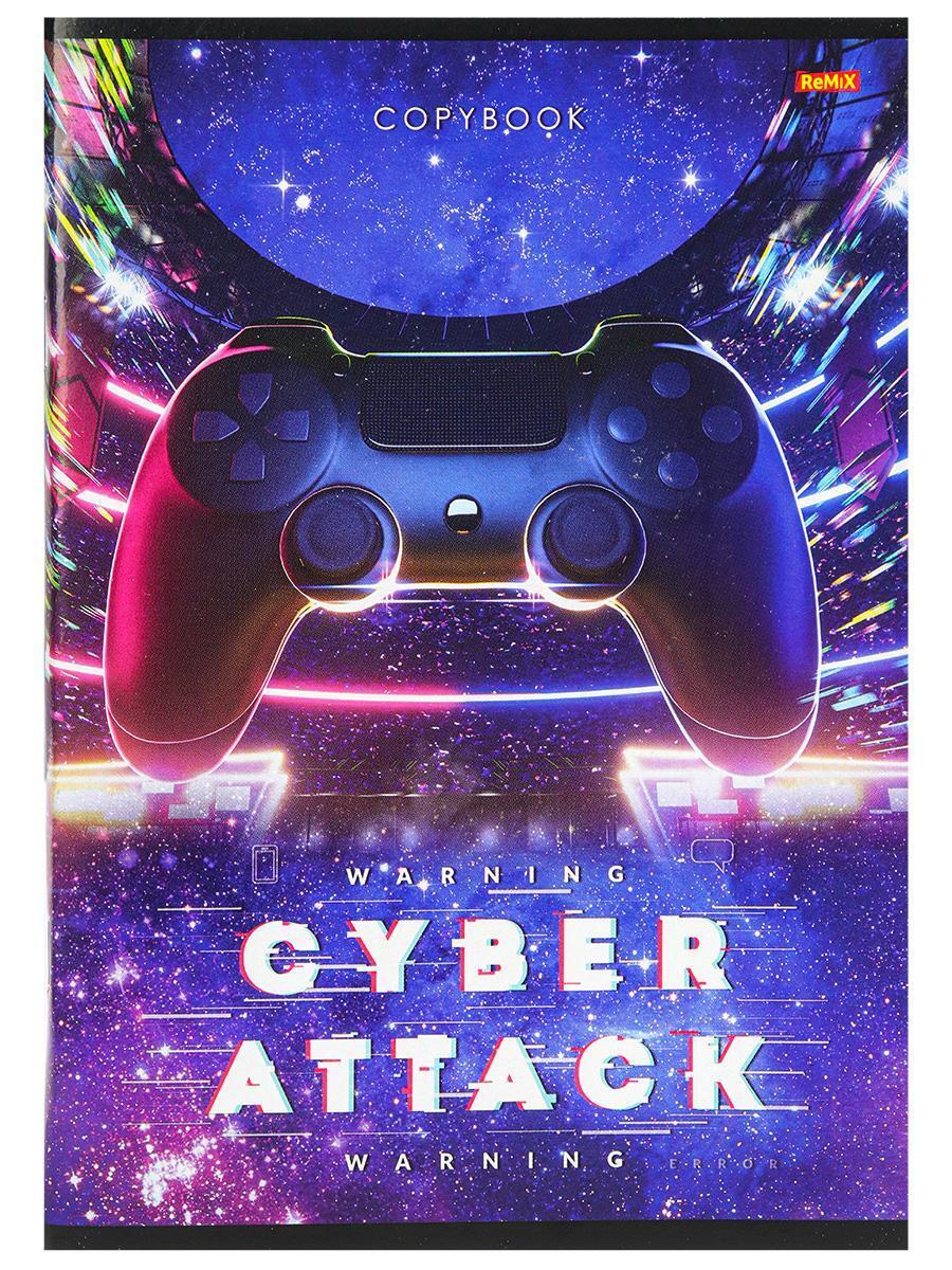 Тетрадь А5 96л. клетка, обложка 'Кибератака', 145х203мм, серый блок