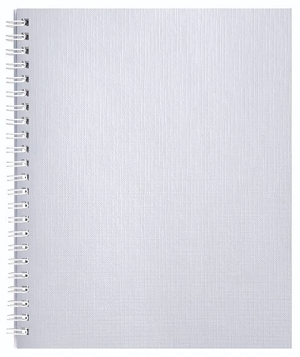 Особенность модели — скрепление на гребне, позволяющее полностью раскрывать тетрадь на 360 градусов, что значительно облегчает работу с страницами и делает записи более комфортными. Яркая белая обложка с сатиновым тиснением придает изделию стильный внешний вид и глубину металлического блеска, он блики под разными углами.