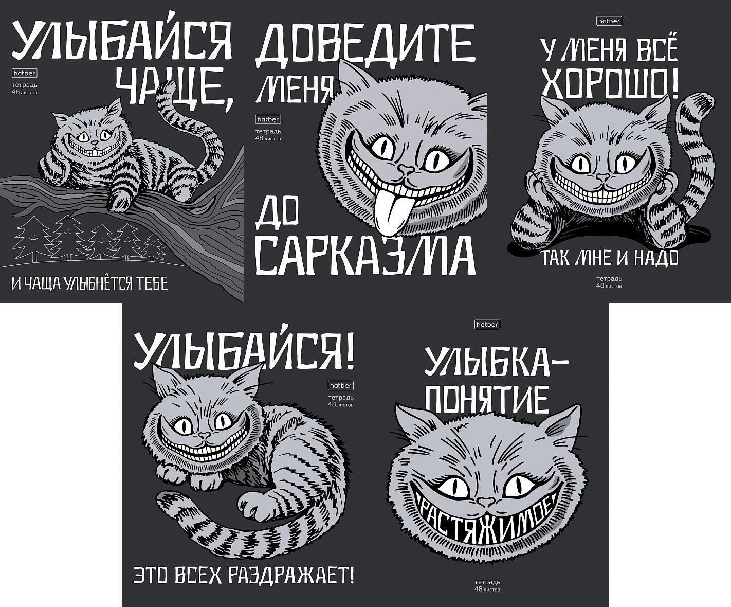 Тетрадь А5 48л клетка на скобе, мотивирующий дизайн 'Улыбайся!', офсет 60г/м2