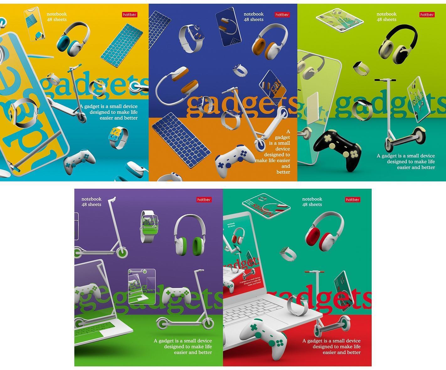Тетрадь А5, 48 листов, линейка, скоба, мелованный картон, "Мои гаджеты" цвет в ассортименте