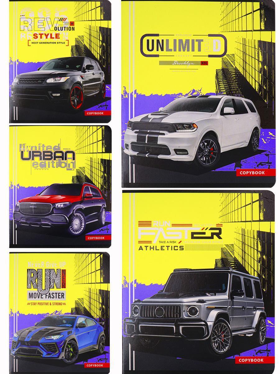 Тетрадь в клетку 48 листов, "Разнообразные кроссоверы", А5, стильные авто на обложке