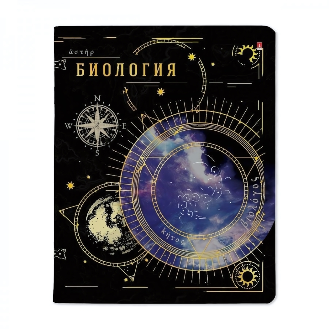 Размер тетради соответствует стандартному формату А5, что делает её удобной для ношения в рюкзаке. Обложка выполнена в черном цвете с золотыми и белыми элементами, что придаёт ей современный вид. Тетрадь идеально подходит для занятий по биологии, а также для записей и заметок в других предметах. Выбирая эту тетрадь, вы получаете не только качественный продукт, но и стильный аксессуар для учёбы.