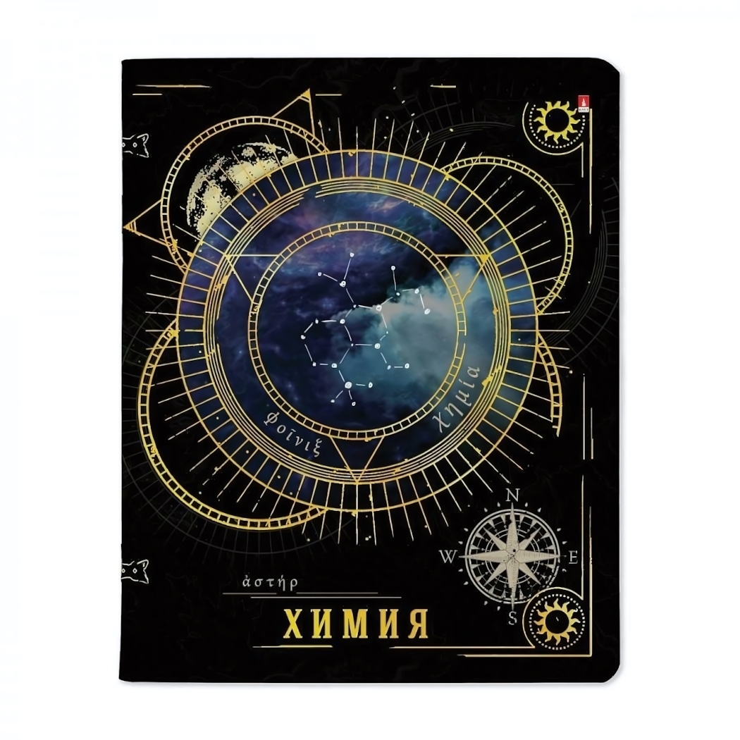 Идеальный спутник для изучения химии с дизайном, который вдохновляет на открытия. Золотое тиснение и глубокая тематическая графика превращают обычные конспекты в произведение искусства, подчеркивая вашу индивидуальность.