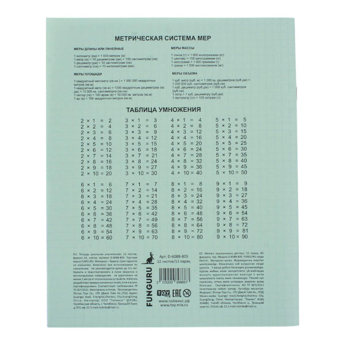 Тетрадь школьная А5 12л клетка, 'Funguru', микс цветов, комплект 10 тетрадей