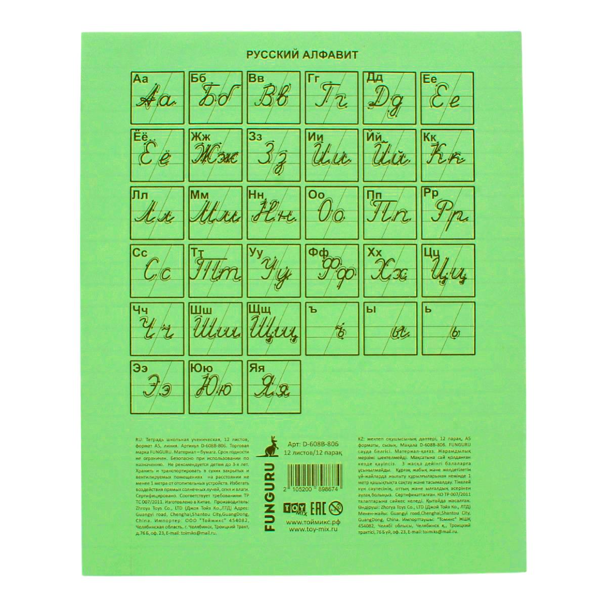 - Таблица русского алфавита на обороте помогает правильно писать буквы