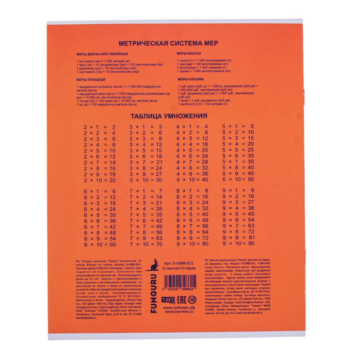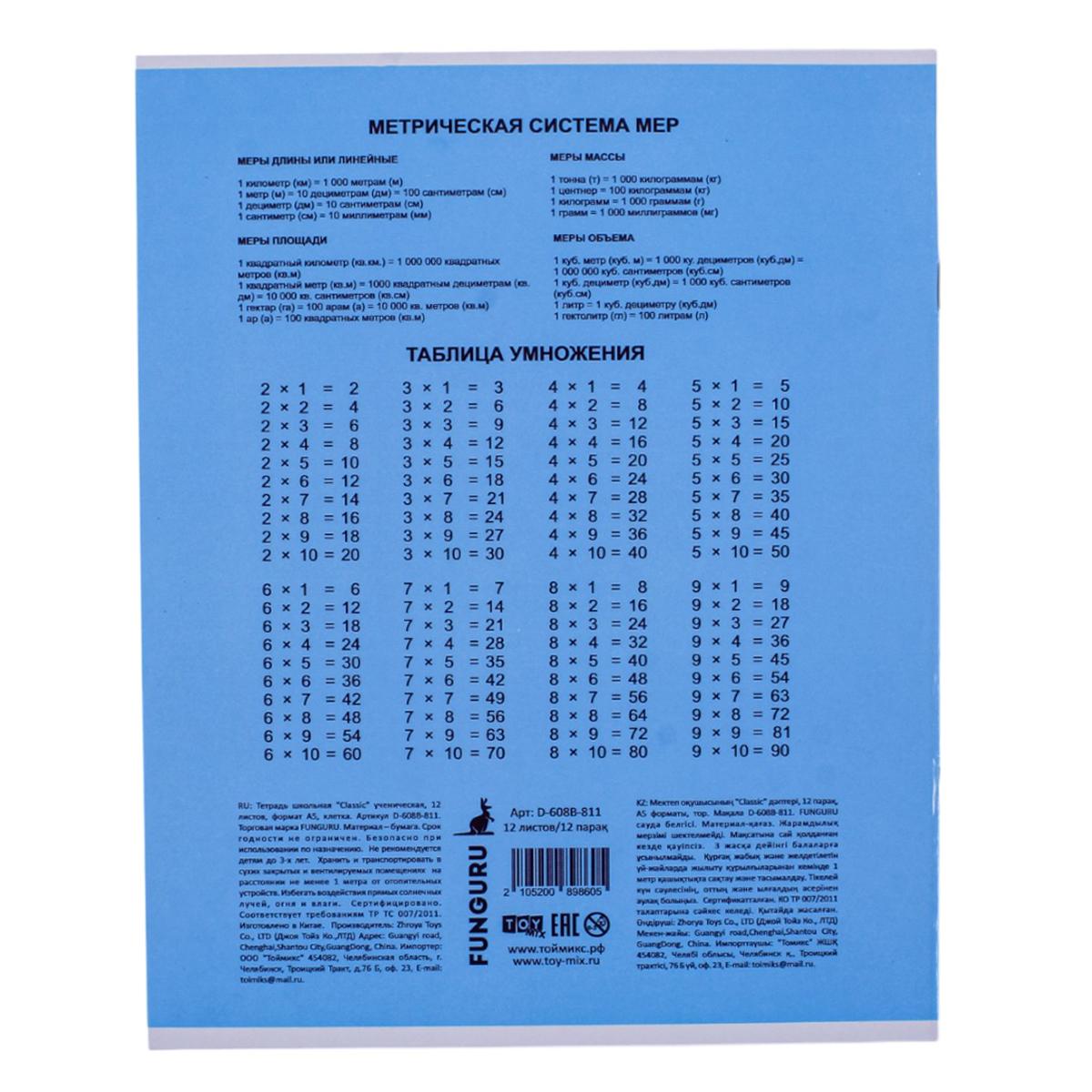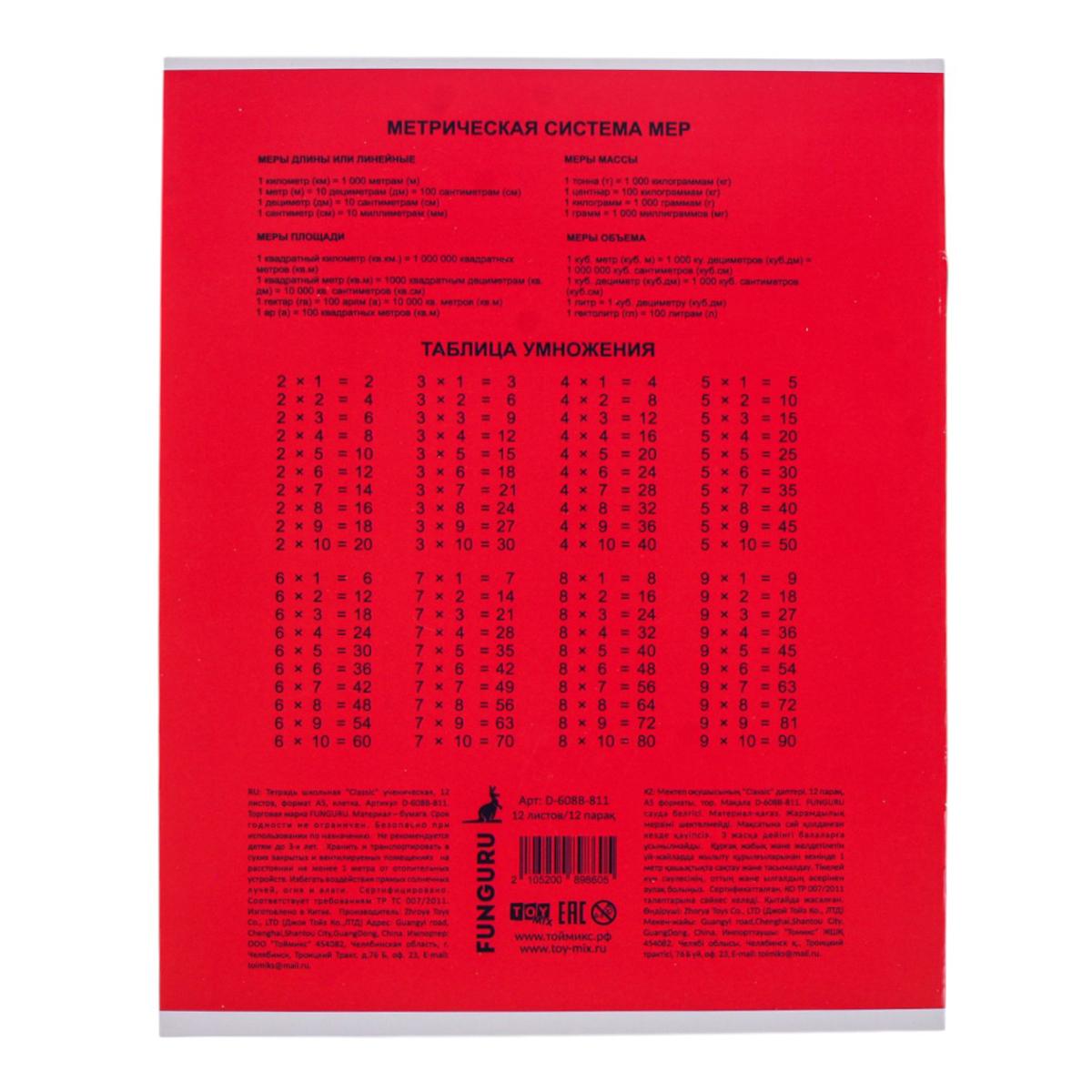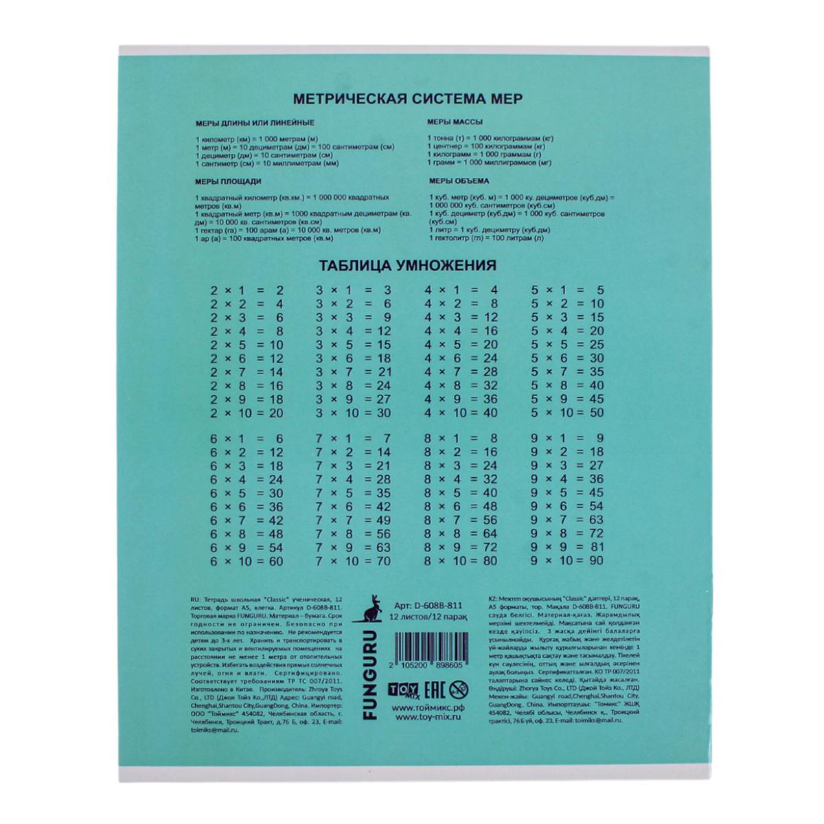 Тетрадь школьная "Classic" А5 12л клетка 98% микс цветов, комплект 5 тетрадей