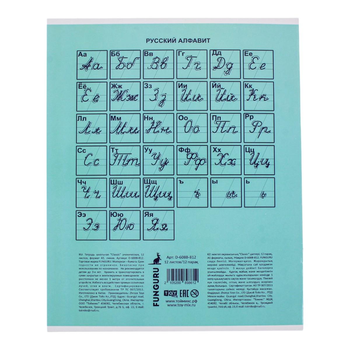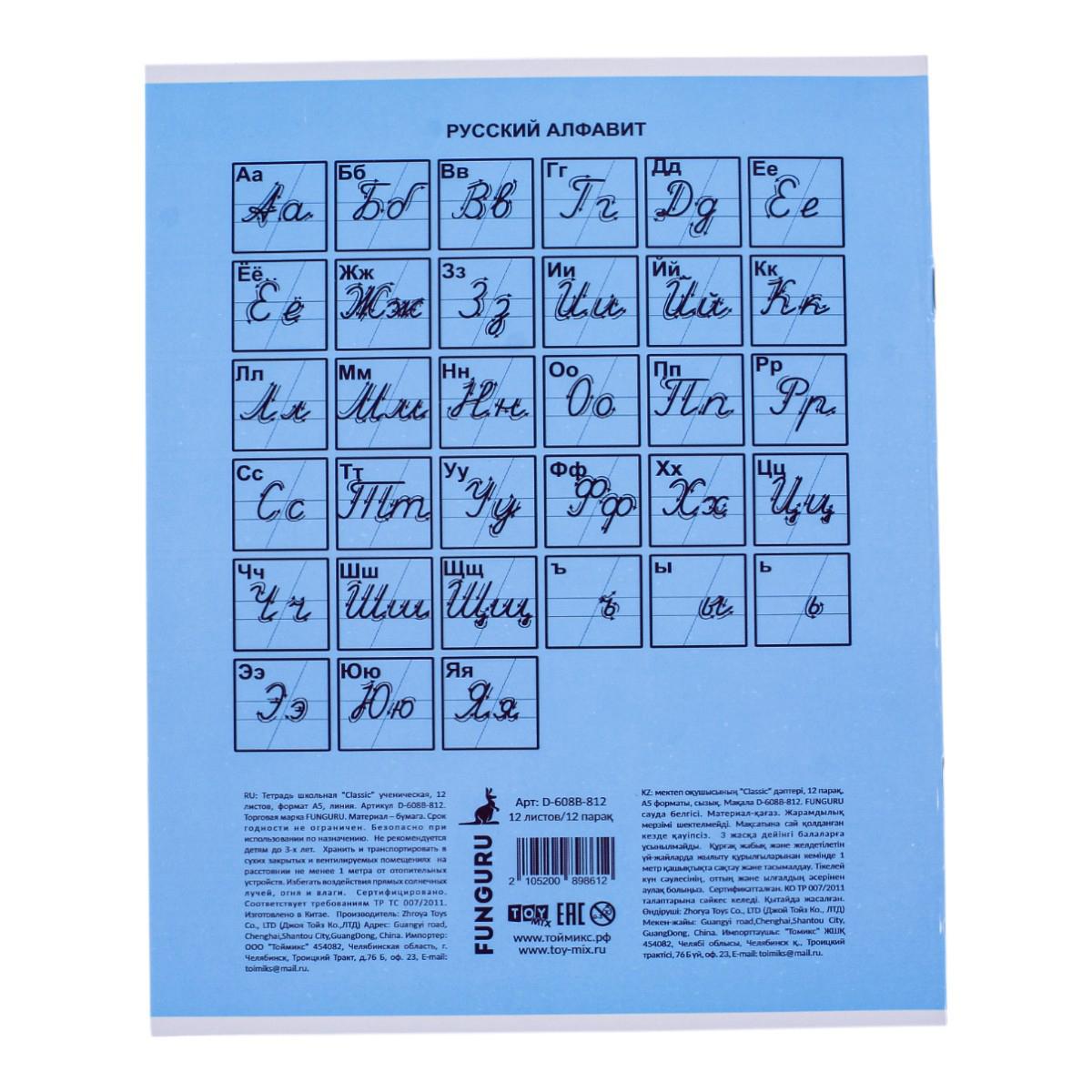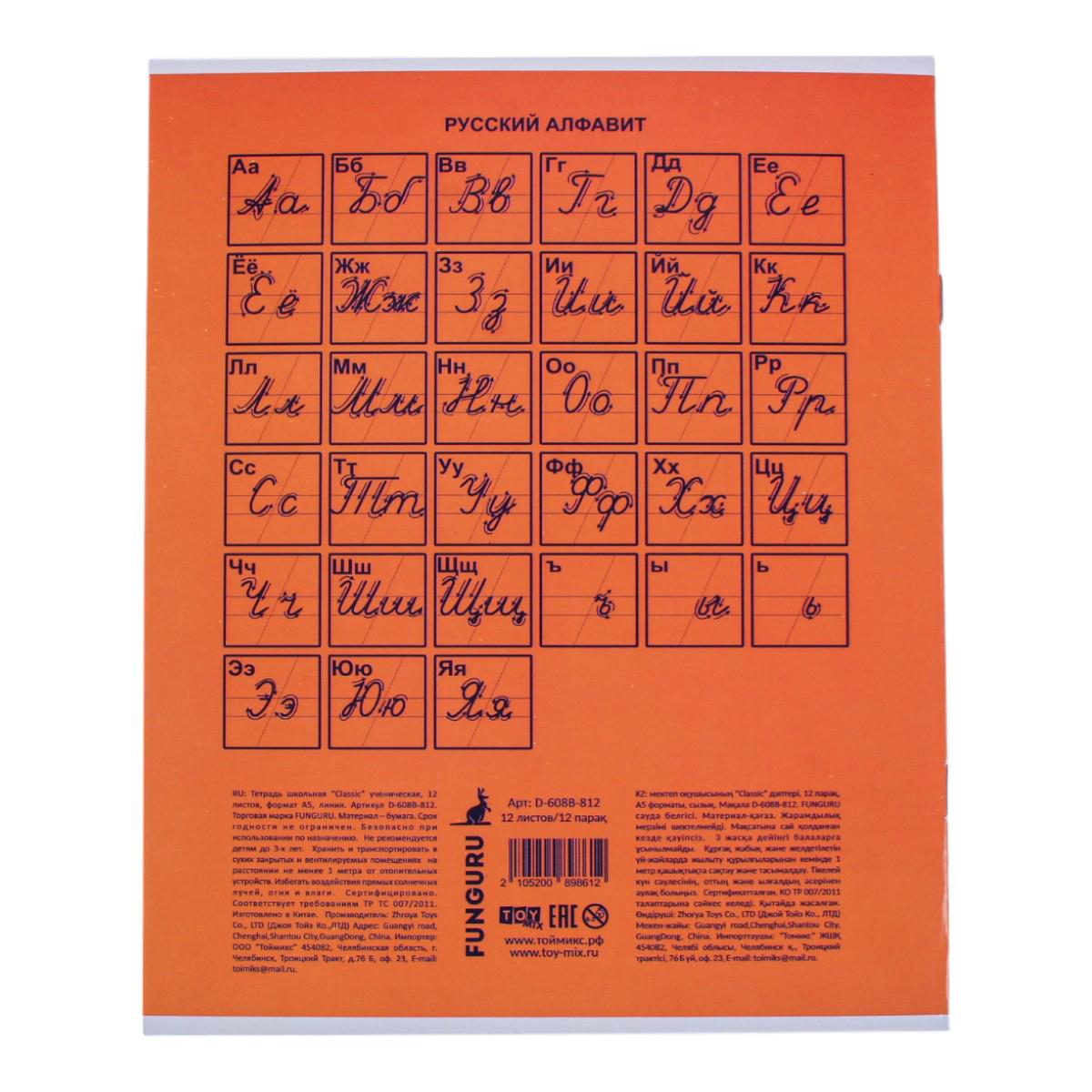 Тетрадь школьная 'Classic' А5 12л линейка, картон 210гр, микс цветов, комплект 5 тетрадей