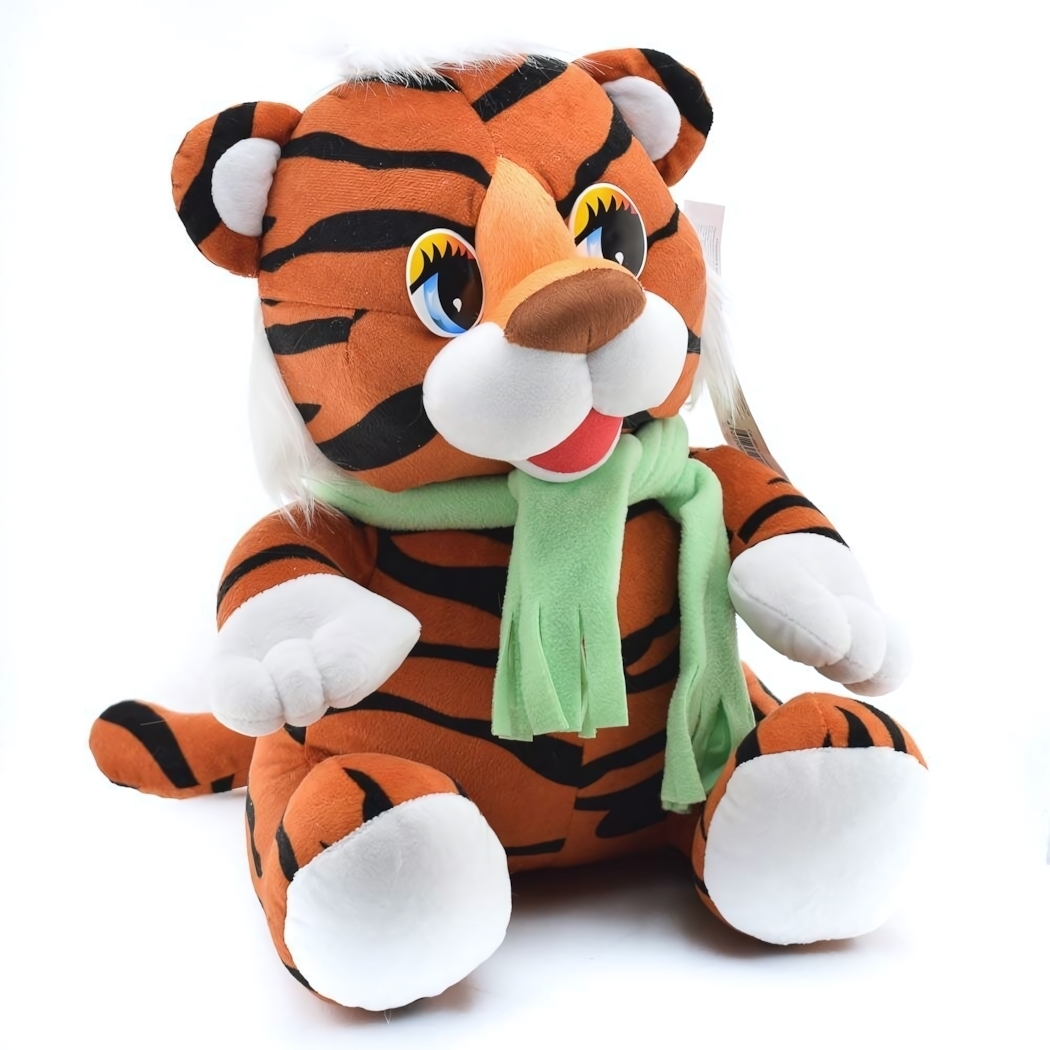 Мягкая игрушка "Тигренок в шарфе", оранжевый/черный, текстиль, размер средний