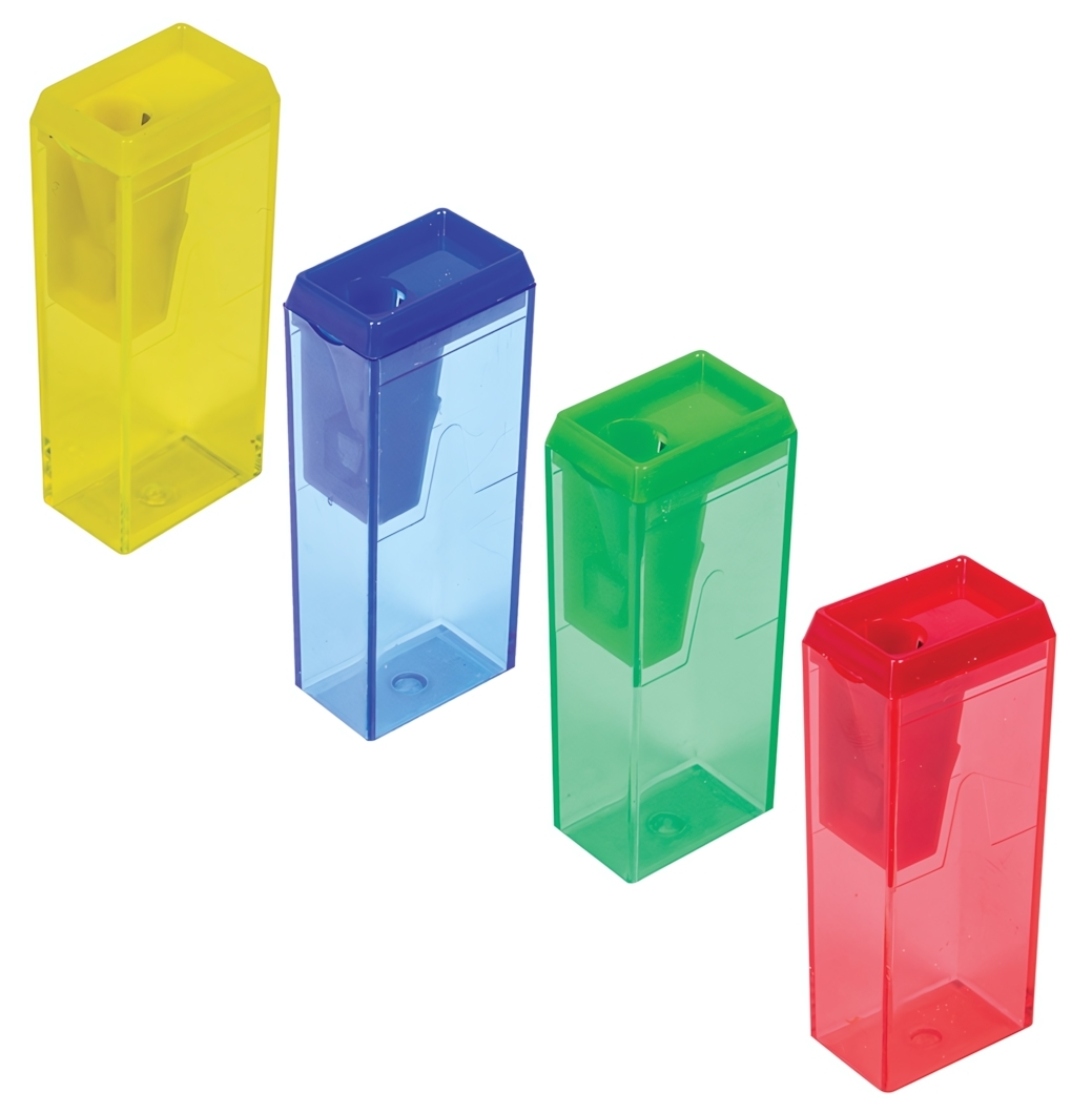 Компактные размеры (60х16х10 мм) позволяют носить точилку в пенале или сумке. Цветовая гамма включает яркие оттенки (синий, желтый, зеленый, красный), которые делают процесс обучения более увлекательным.