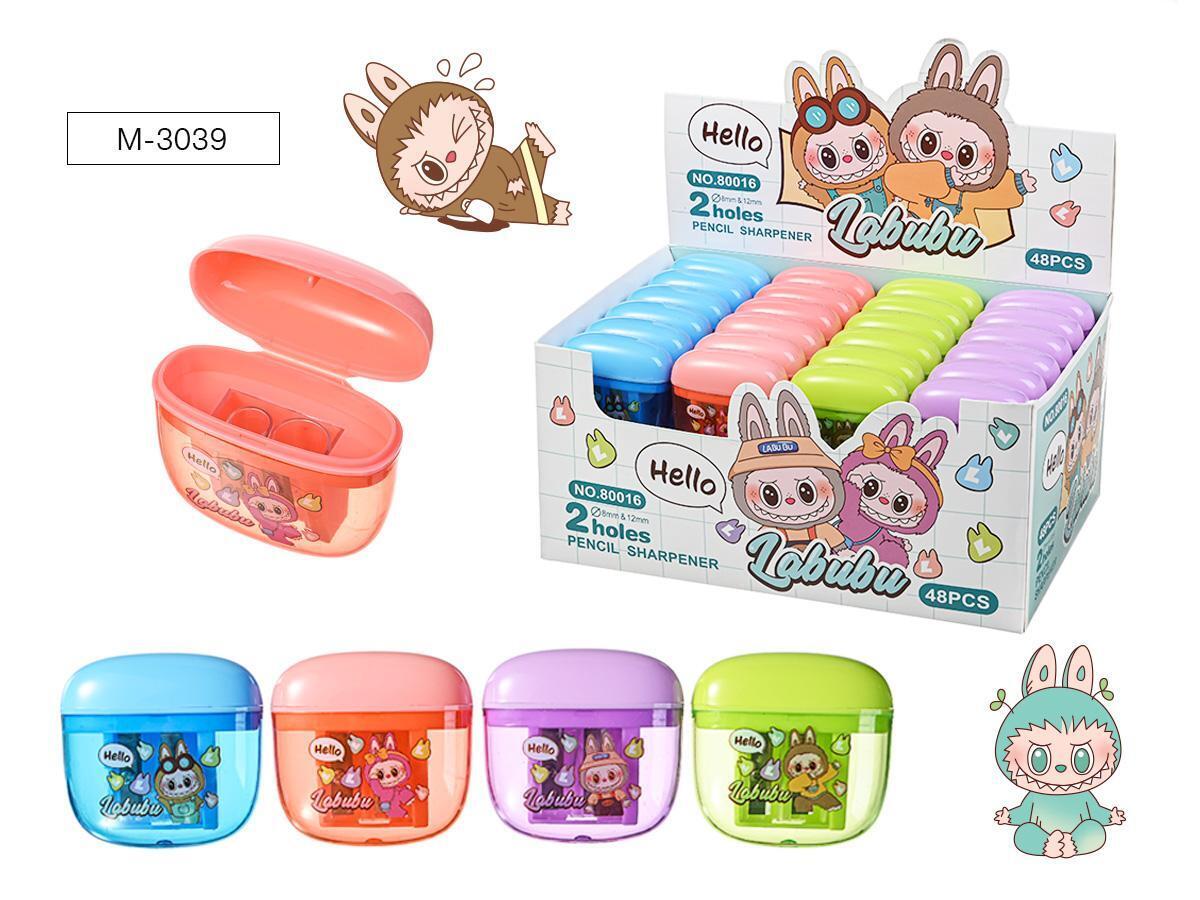 Точилка 2 отверстия пластик «Зубастик», контейнер для стружки, 4 дизайна, цвет в ассортименте, диаметр 8/12 мм