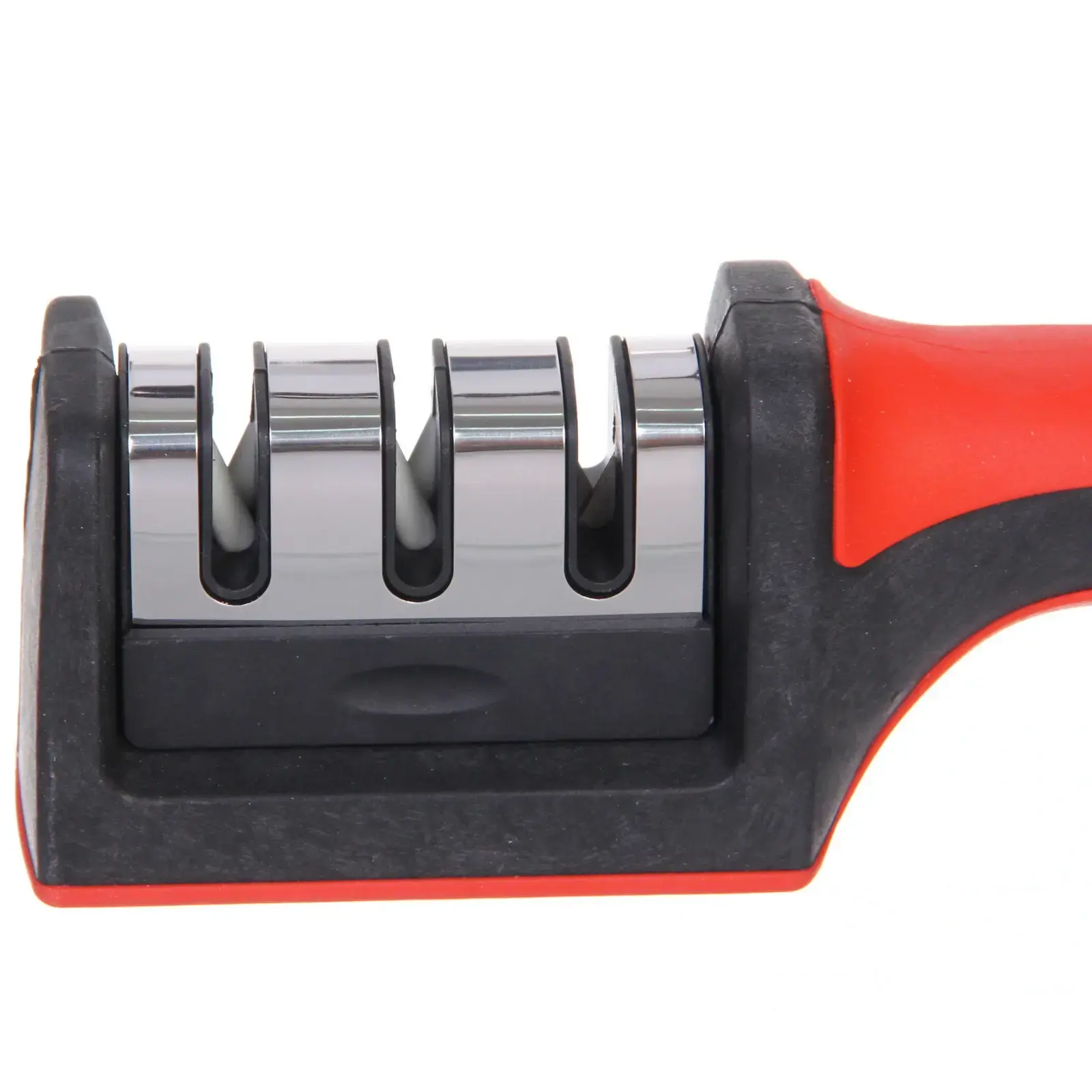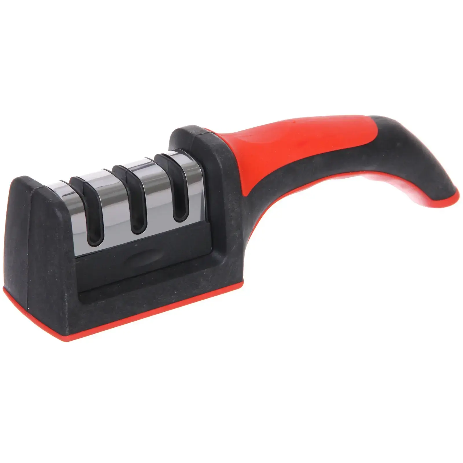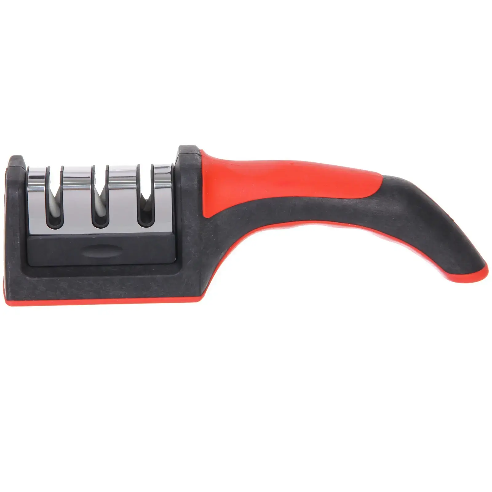 Точилка для ножей универсальная 21см с 3 заточными элементами, металл/керамика/пластик, ручка черно-красная