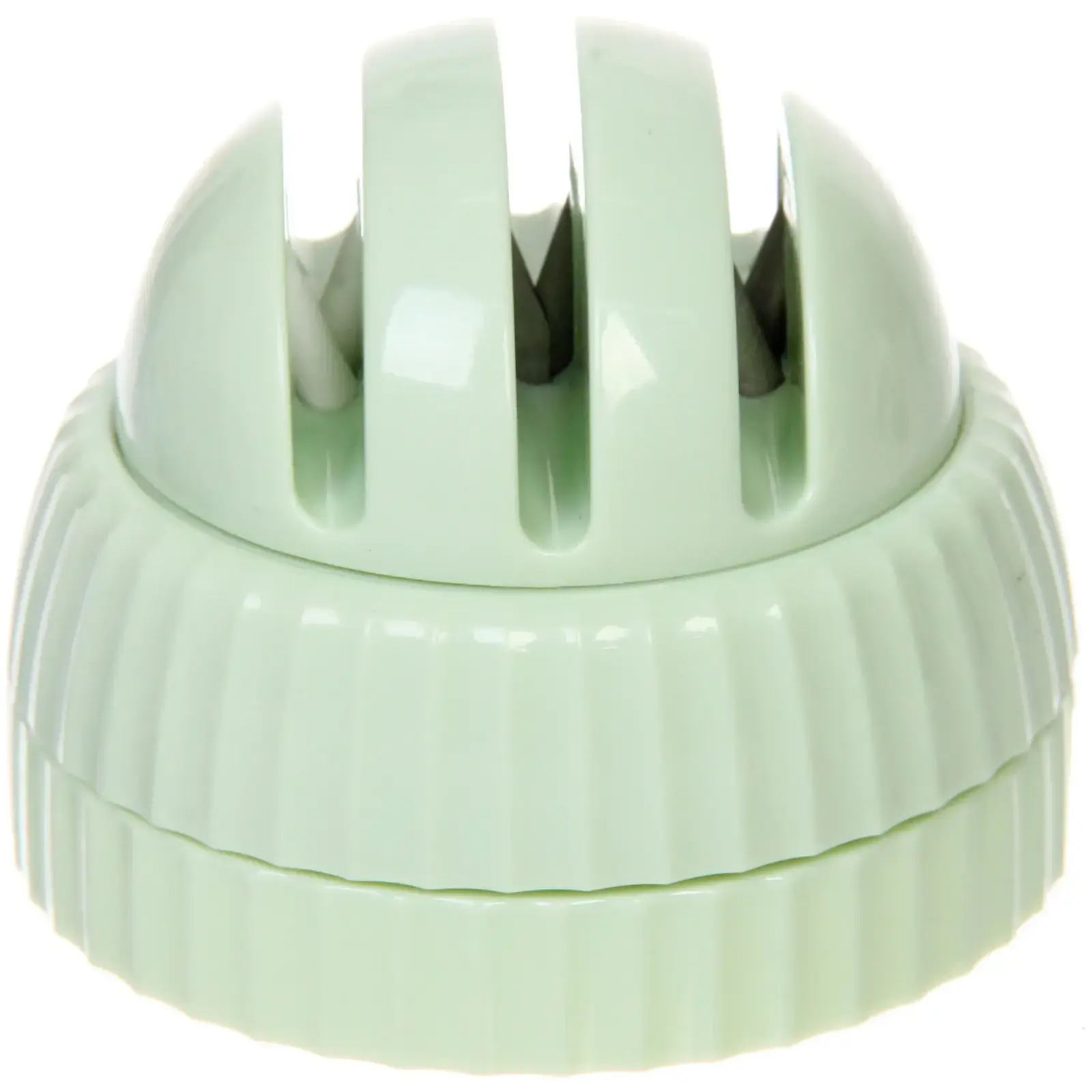 Точилка выполнена в светло-зеленом цвете и имеет округлую форму с рифленой текстурой, что обеспечивает удобный захват. Она легка в использовании и не требует специальных навыков. Просто следуйте инструкциям на упаковке, чтобы достичь наилучших результатов. Не упустите возможность сделать ваши ножи острыми и готовыми к работе!