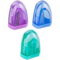 Эта точилка идеально подходит для затачивания карандашей дома и в школе. Благодаря компактному размеру и ярким цветам (фиолетовый, синий, зеленый), она станет надежным помощником для учеников и студентов.
