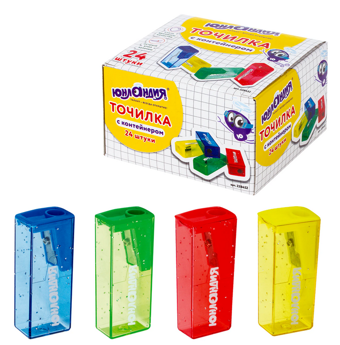Точилка отличается надежной металлической режущей частью, которая обеспечивает высокое качество заточки, а компактные размеры (60х25х15 мм) позволяют легко разместить её в пенале или на столе. Модели разных цветов добавляют яркости и привлекательности, а возможность выбора дизайна делает каждую покупку уникальной.